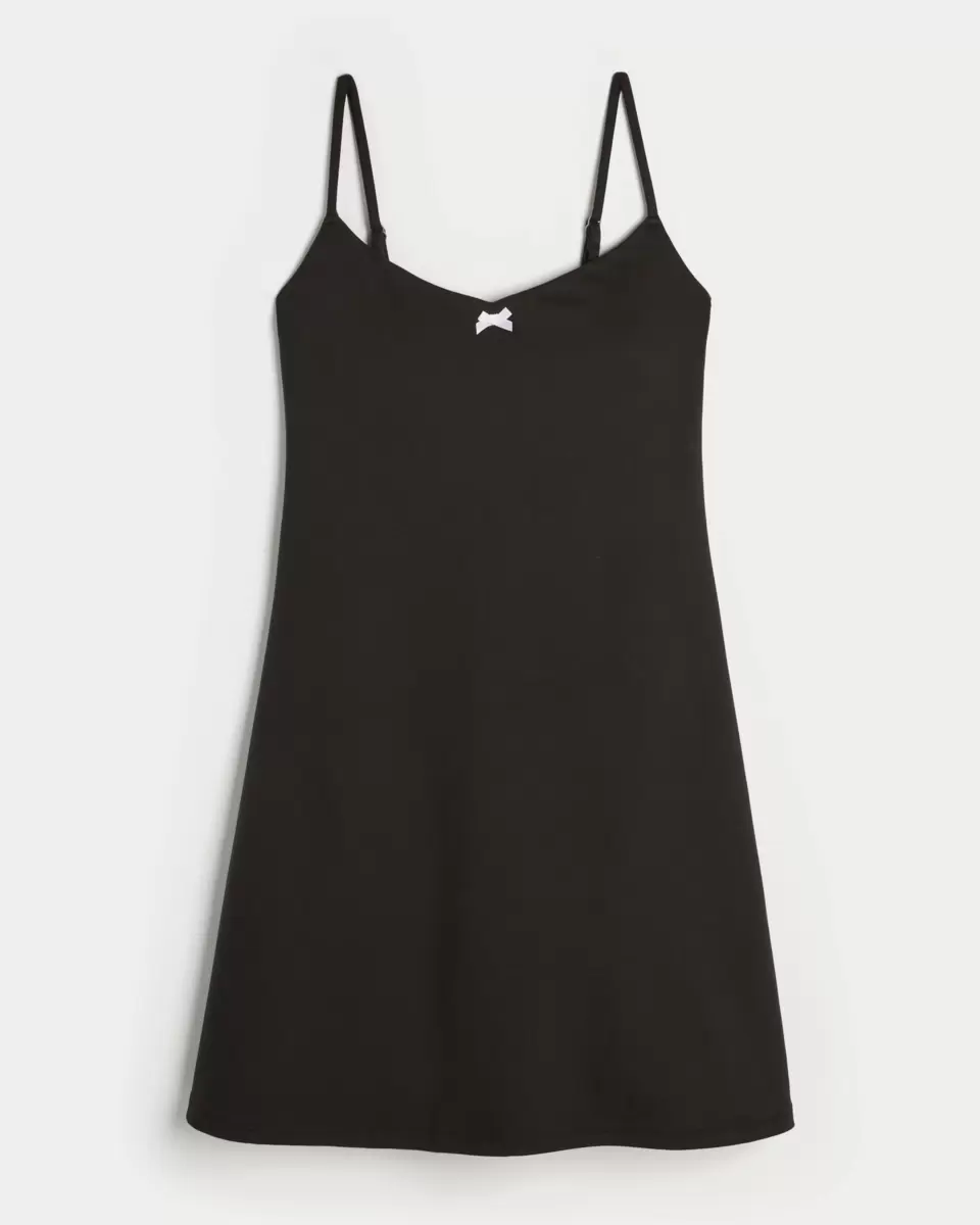 Denna söta och bekväma aktiva klänning i gameday-stil har en rosettdetalj i mitten av halsen. Justerbara remmar. Importerad.