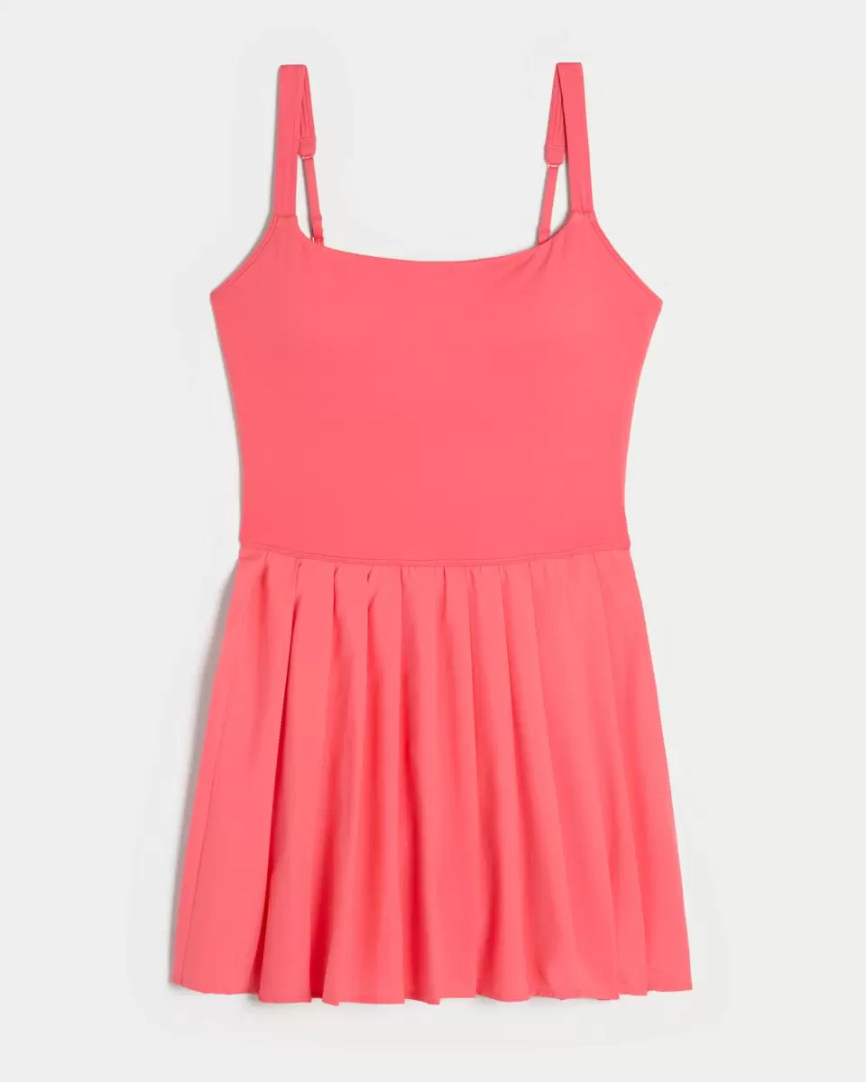 Denna söta och bekväma aktiva klänning har en inbyggd hyll-bh med avtagbara kuddar och inbyggda badrumsvänliga shorts. Justerbara axelband, vacker veckad kjol. Importerad.
