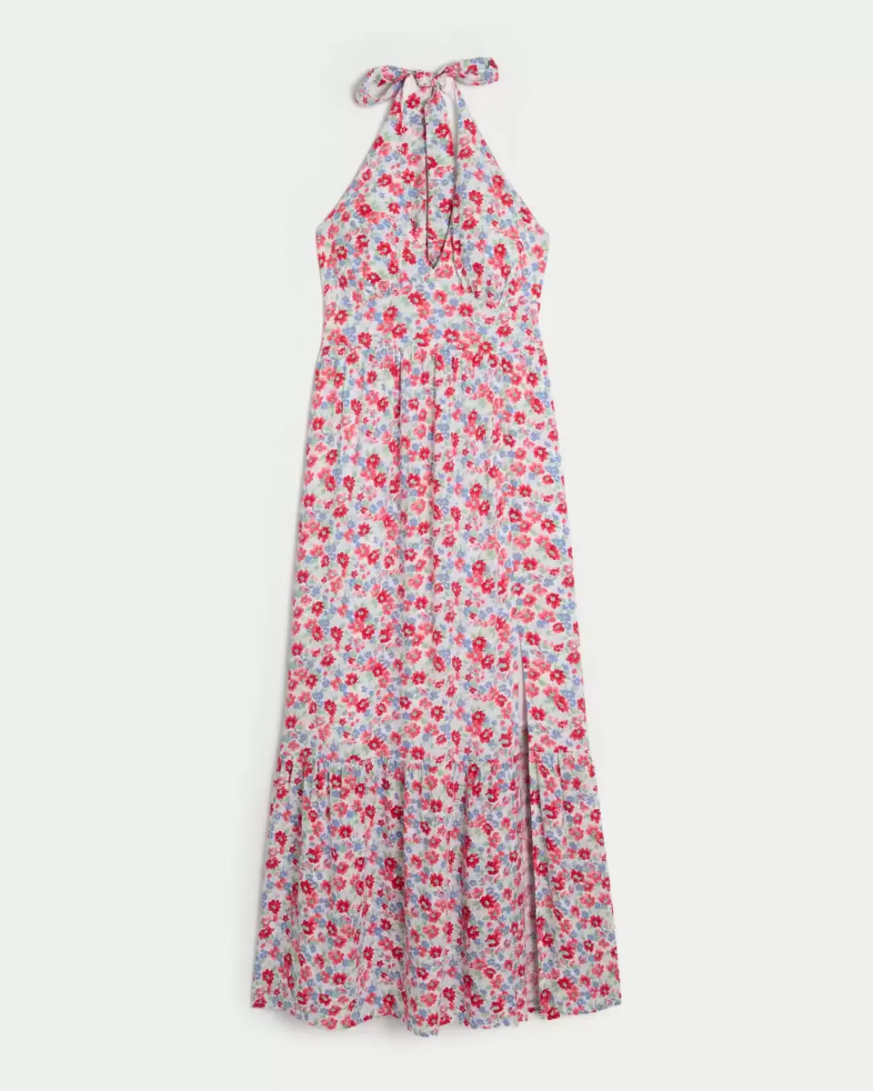 Flytig och supermjuk, den här klänningen har grimma och en öppen ryggdetalj. Avtagbara kuddar, fickor, maxlängd. Importerad.