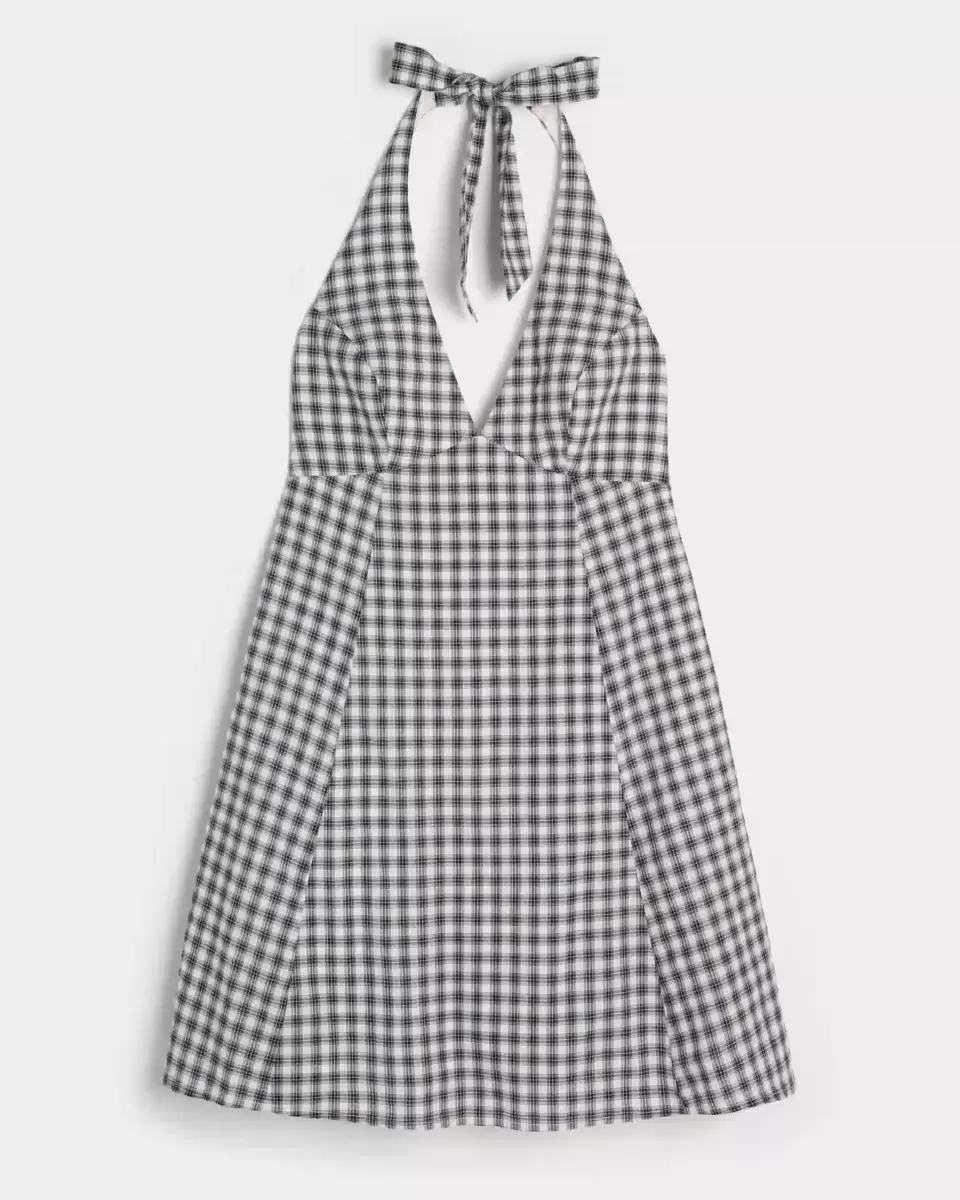 En flytande och mjuk miniklänning med grimma och en öppen ryggdetalj. A-linje siluett, v-ringning. Importerad.