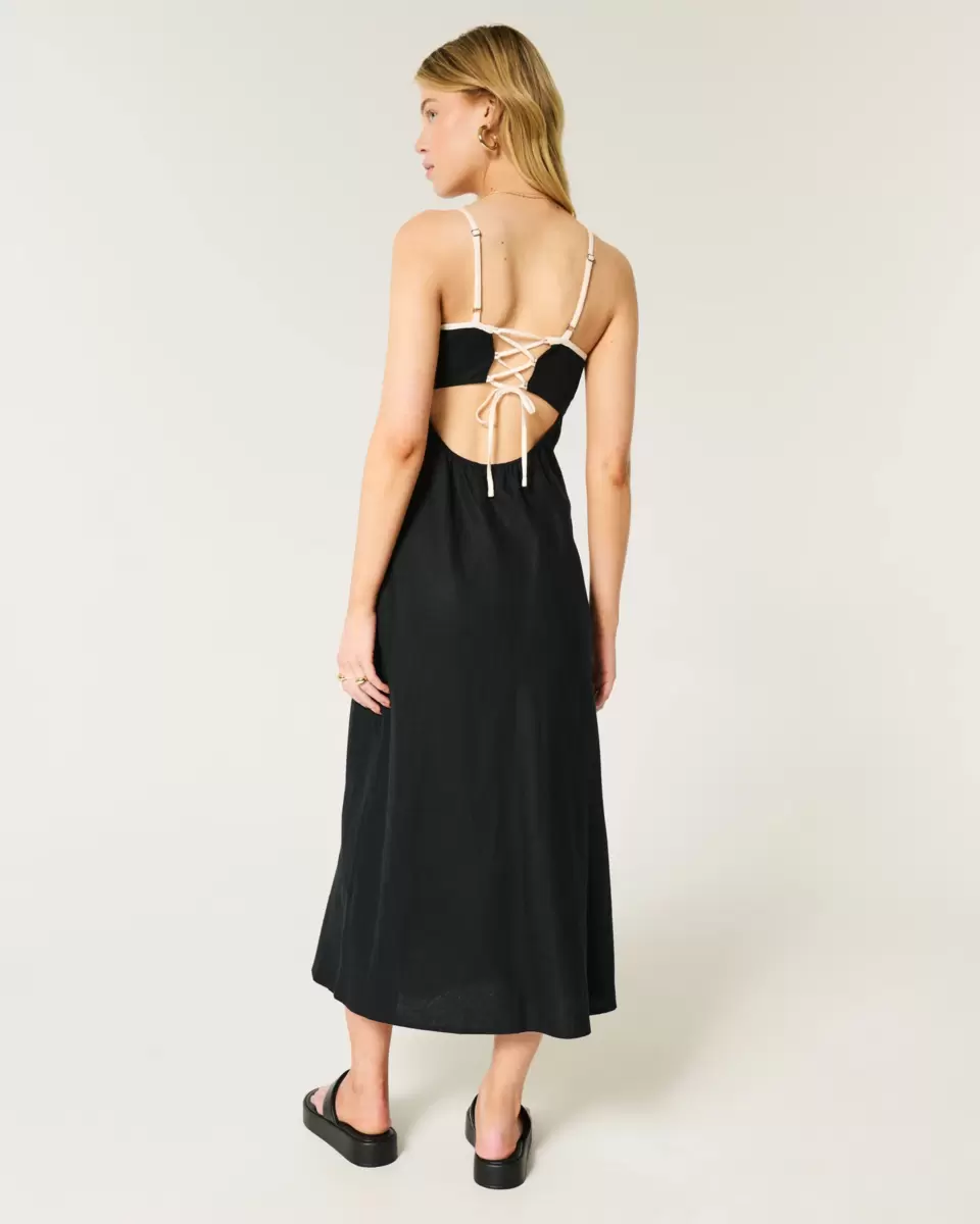 Din nya favoritklänning är perfekt för lager och har en smickrande detalj under bystsömmen och ryggdetalj. Avtagbara kuddar, mjukt linneblandningstyg. Importerad.
