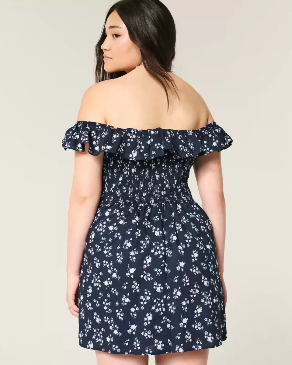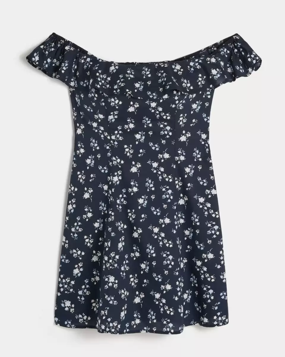 Denna supermjuka och söta miniklänning har en rufsig axelringning. Fickor. Importerad.