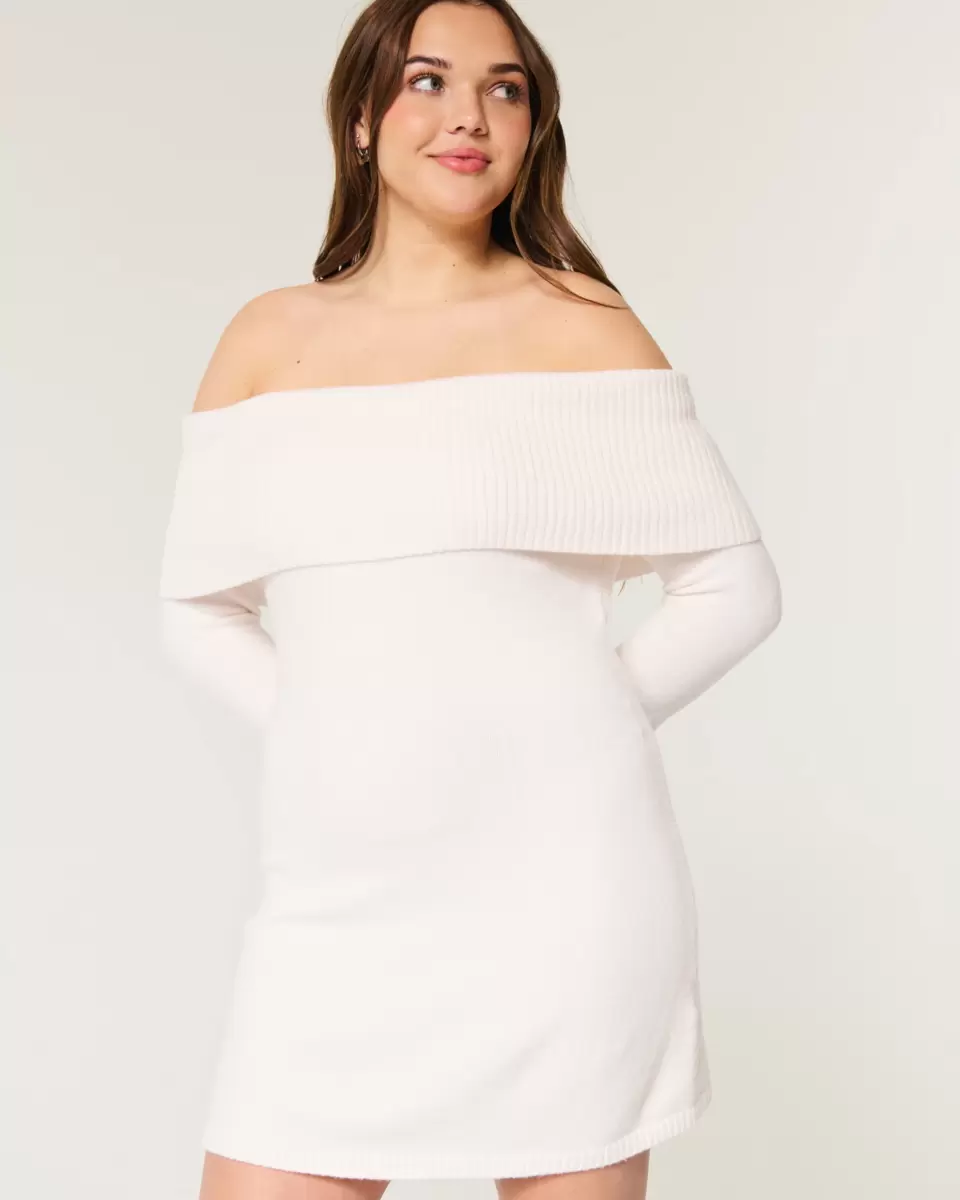 Denna söta, bekväma och supermjuka tröjklänning är designad med en vikbar halsringning och långa ärmar. Skater siluett. Importerad.