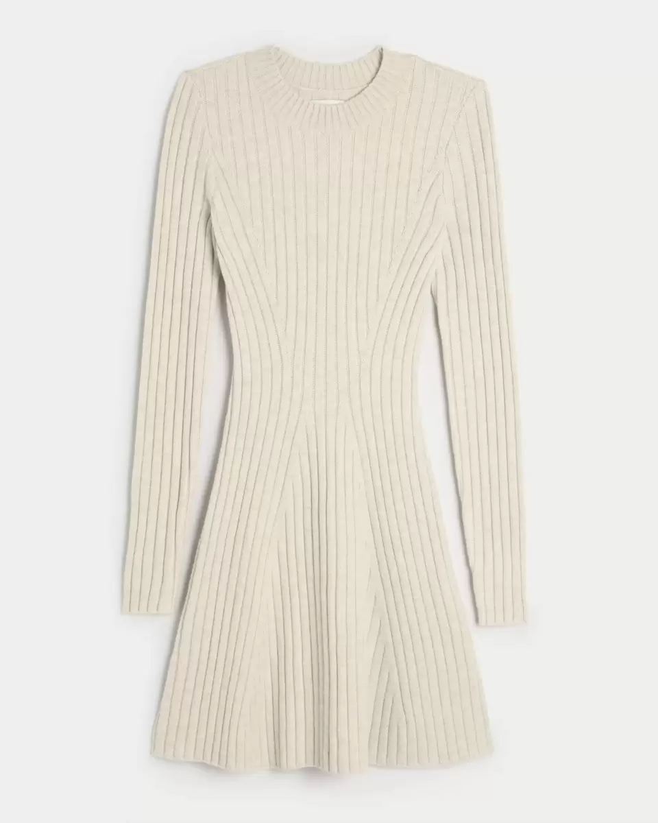 Ribbstickad Skater Mini Sweater Dress