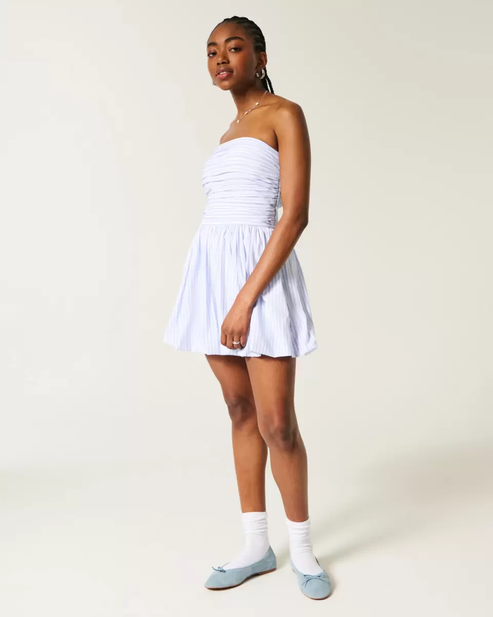 Din nya favoritklänning har avtagbara kuddar, dolda badrumsvänliga shorts, fickor och en öppen ryggdetalj. Rusade detaljer genom livstycket, bubbelkjol. Avtagbara remmar. Importerad.