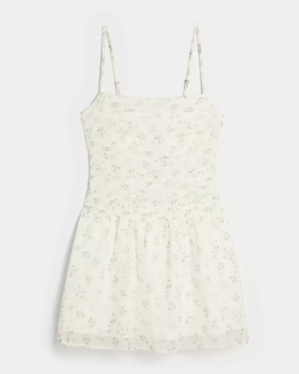 En flytande och supermjuk skortklänning i chiffongtyg. Rynkade detaljer genom livstycket, justerbara remmar, dolda shorts. Importerad.