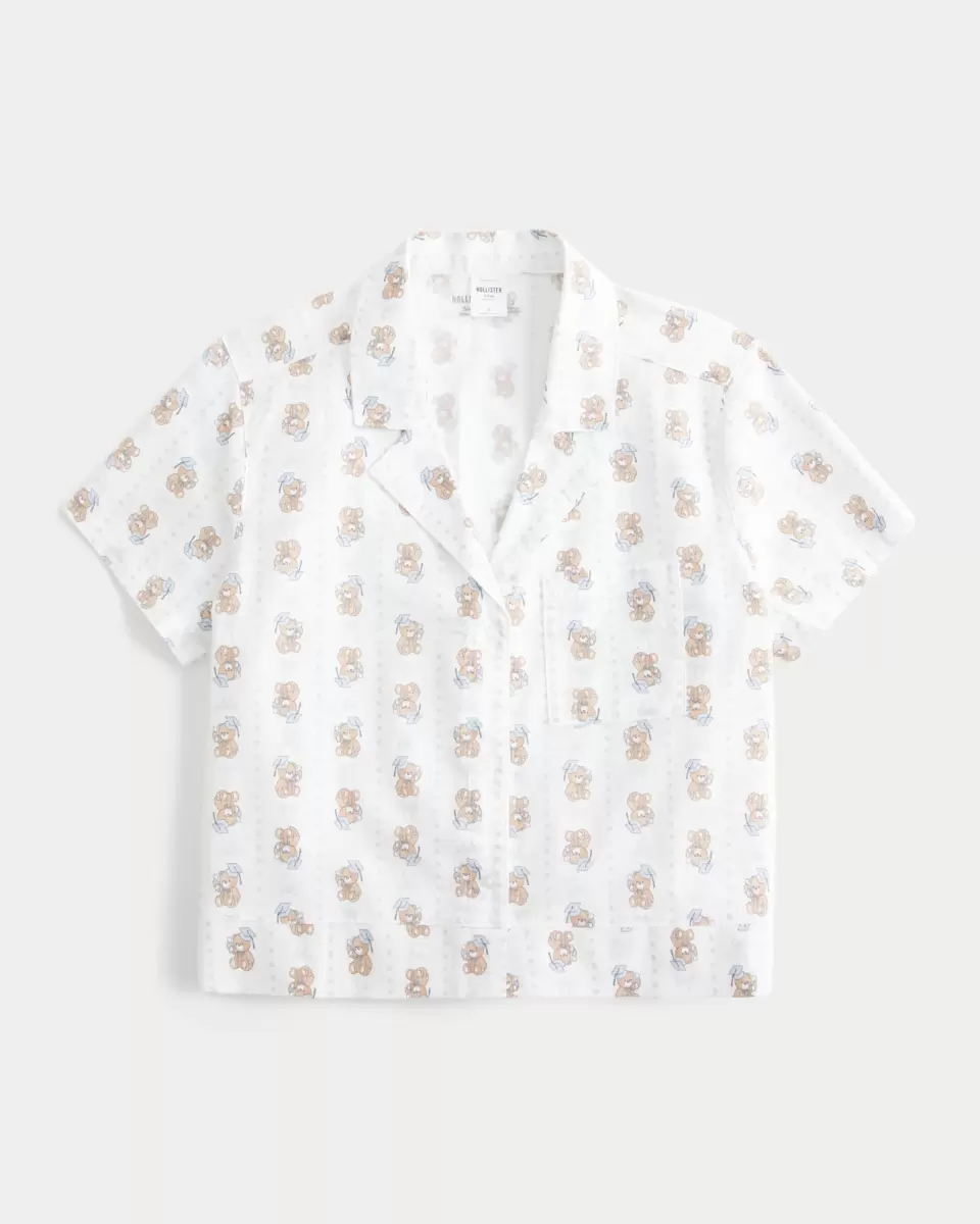 En söt sömnskjorta i mjukt 100 % bomullstyg med ett heltäckande nallemönster. Knäppning, krage, korta ärmar, vänster bröstficka. Easy Fit. Importerad.