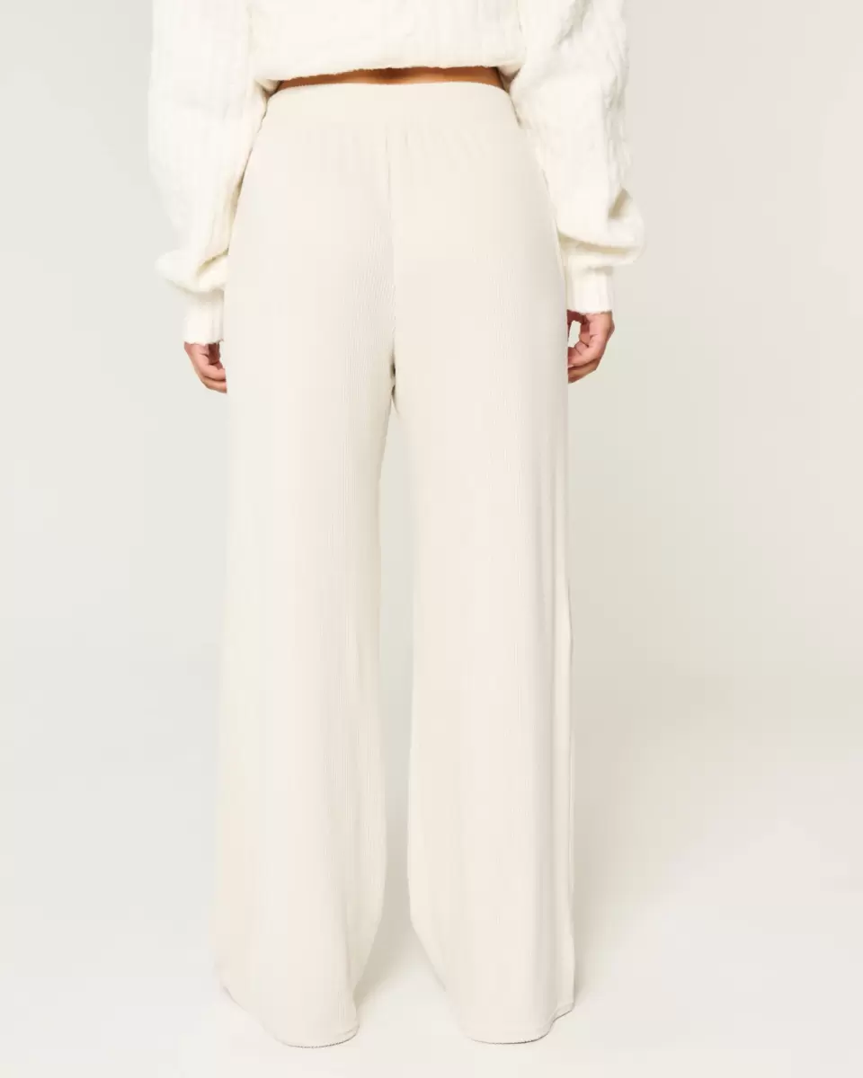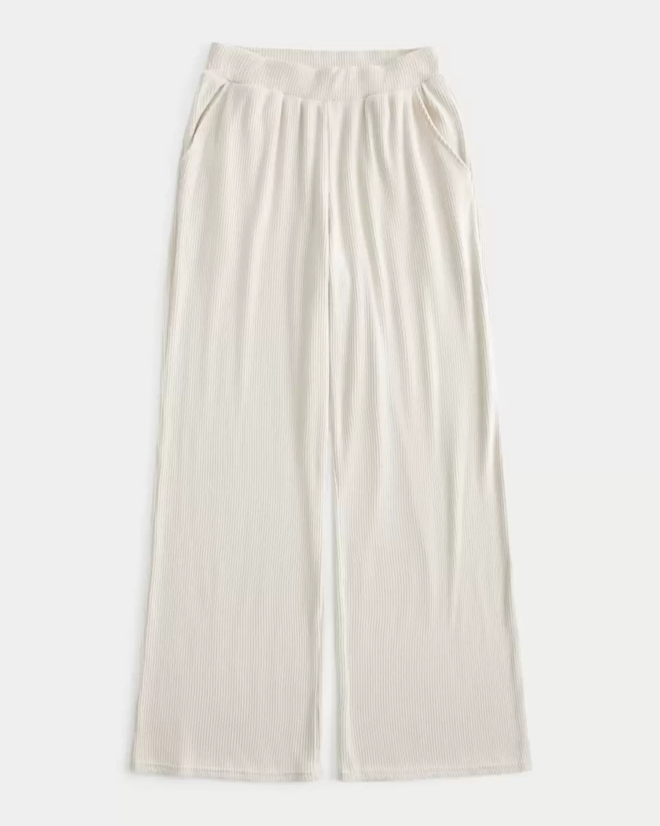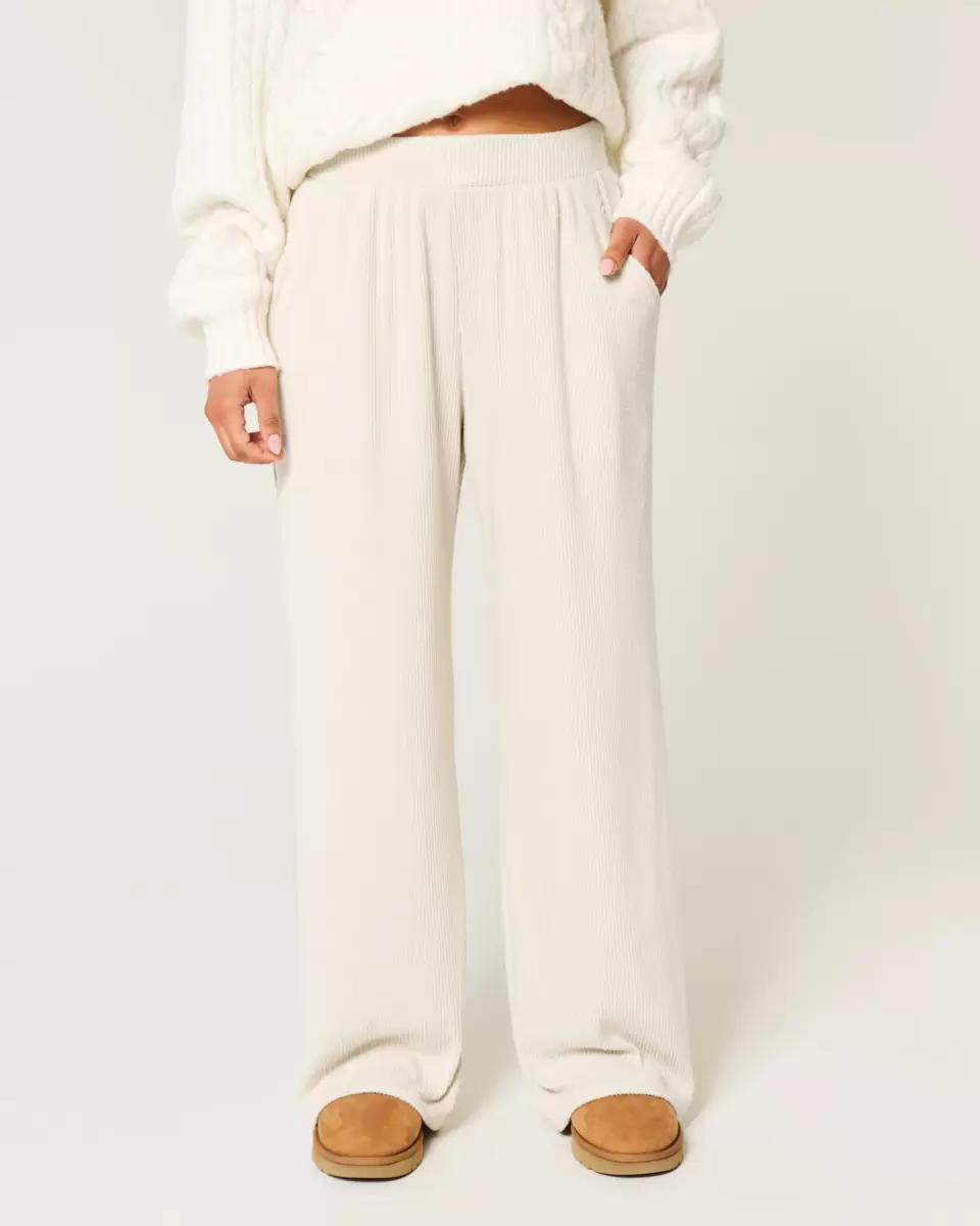 Supermjuka byxor i mysigt ribbad tyg, designade med säckiga ben. Fickor, bandad midja.
