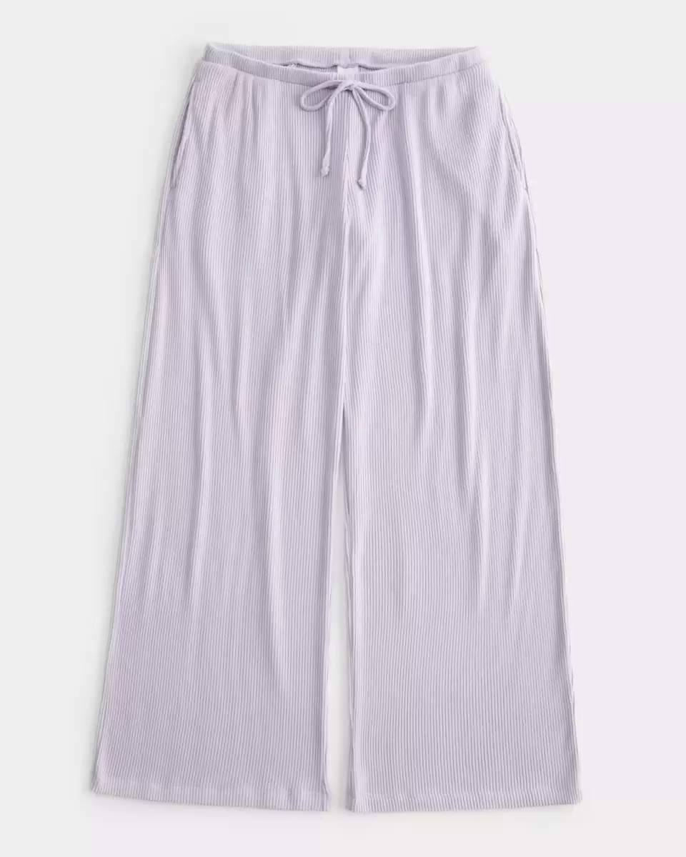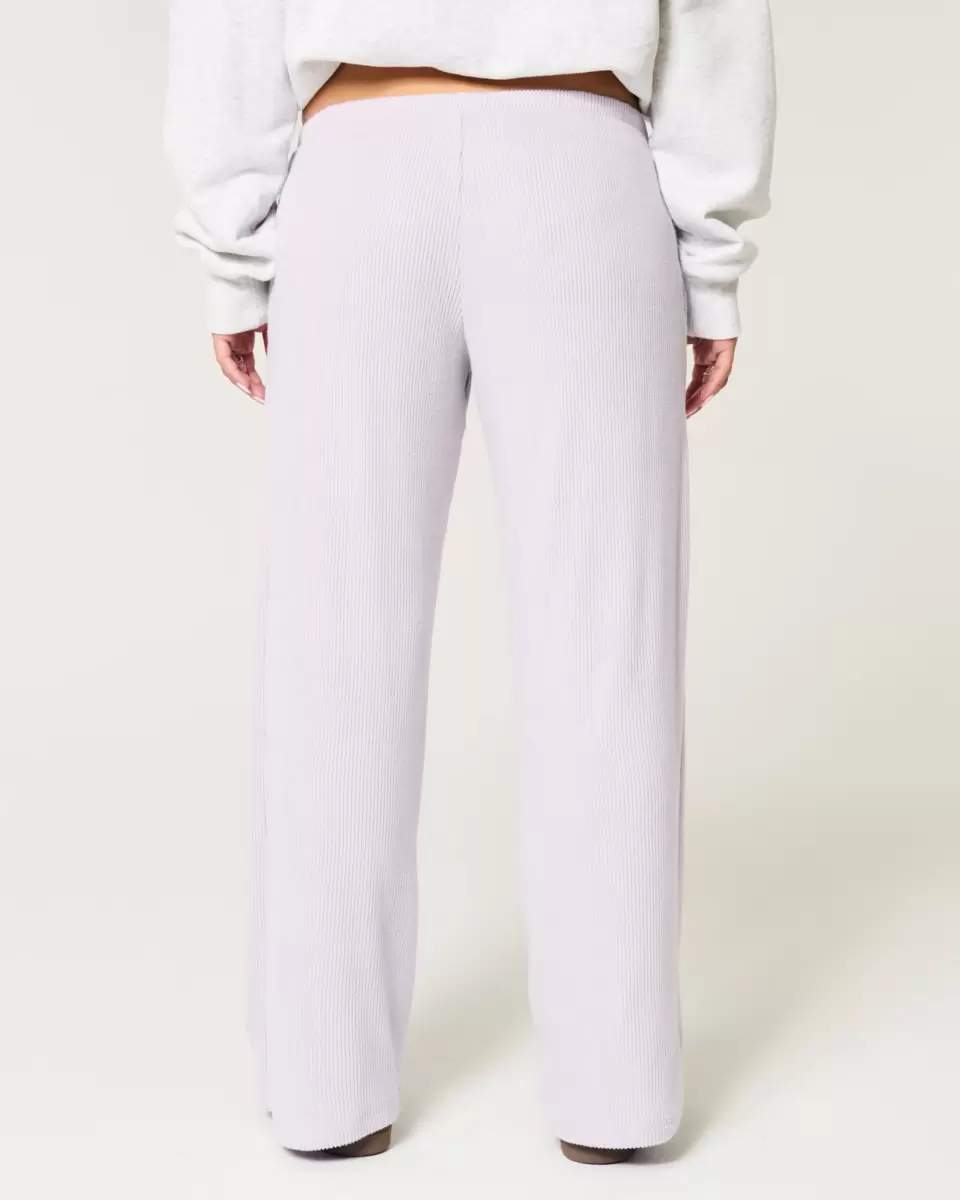 Supermjuka byxor i mysigt ribbad tyg, designade med hög midja och säckiga ben. Fickor, dragsko i midjan. Importerad.