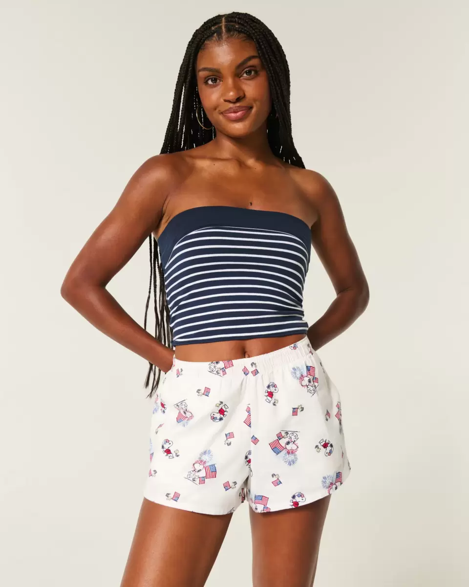 Söta boxershorts i mjukt Oxford-tyg, designade med en justerbar midja och fickor. Officiell Peanuts-licensierad Snoopy och Woodstock-grafik, inredningslogodetaljer i midjan. Importerad.
