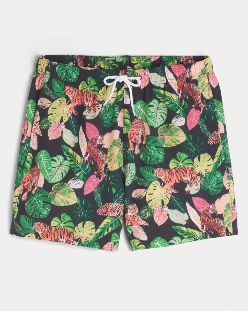 Kortare badbyxor som träffar mitten av låret. Med bekvämt 4-vägs stretchigt simtyg och en 5,5″ innersöm. Fickor. Importerad.