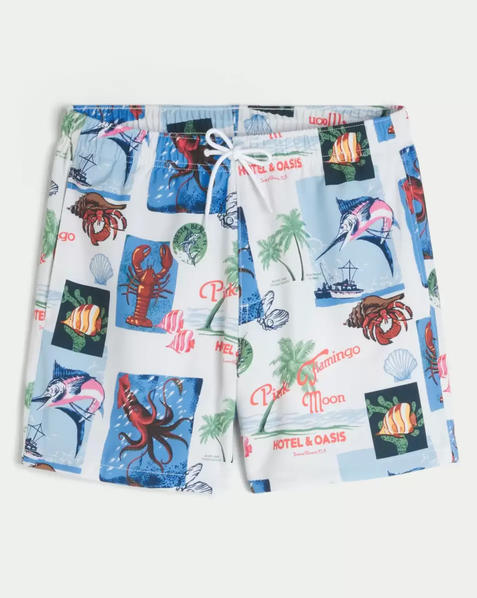 Kortare badbyxor som träffar mitten av låret. Med bekvämt 4-vägs stretchigt simtyg och en 5,5″ innersöm. Fickor. Importerad.