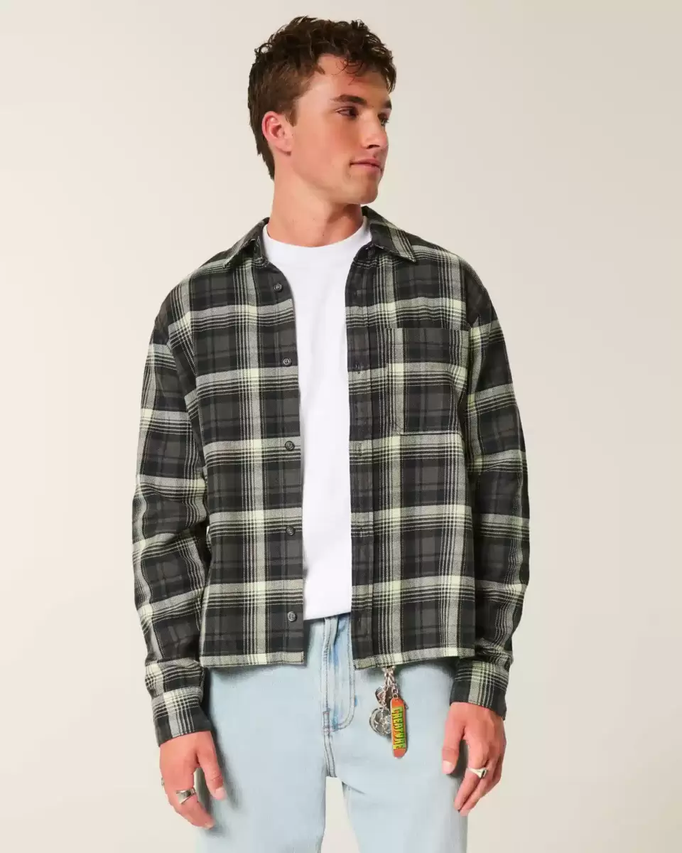 En vintage-inspirerad skjorta i mjukt flanelltyg med hel knappstängning och vänster bröstficka. Långa ärmar, krage. Boxig passform. Importerad.