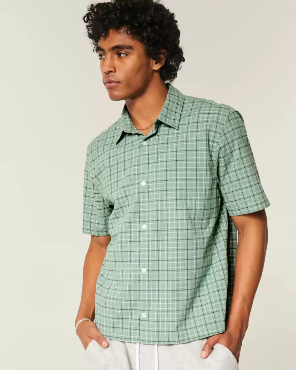 En klassisk kortärmad skjorta med ett rutmönster. Krage, korta ärmar, hel knappstängning. Boxig passform. Importerad.