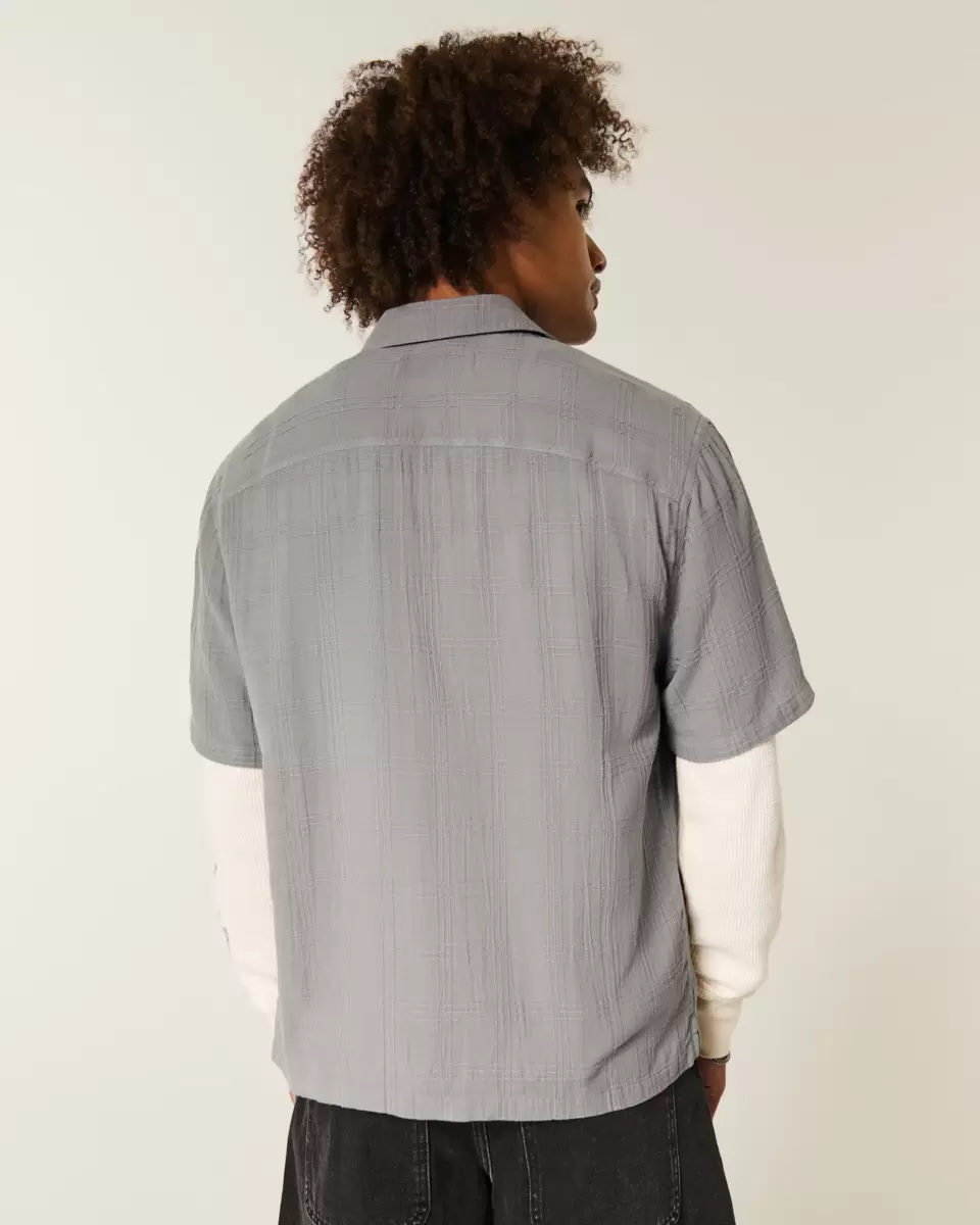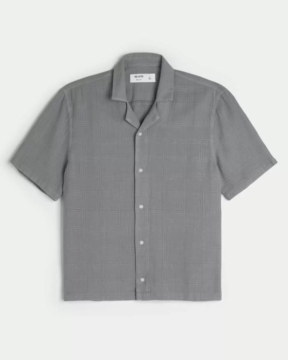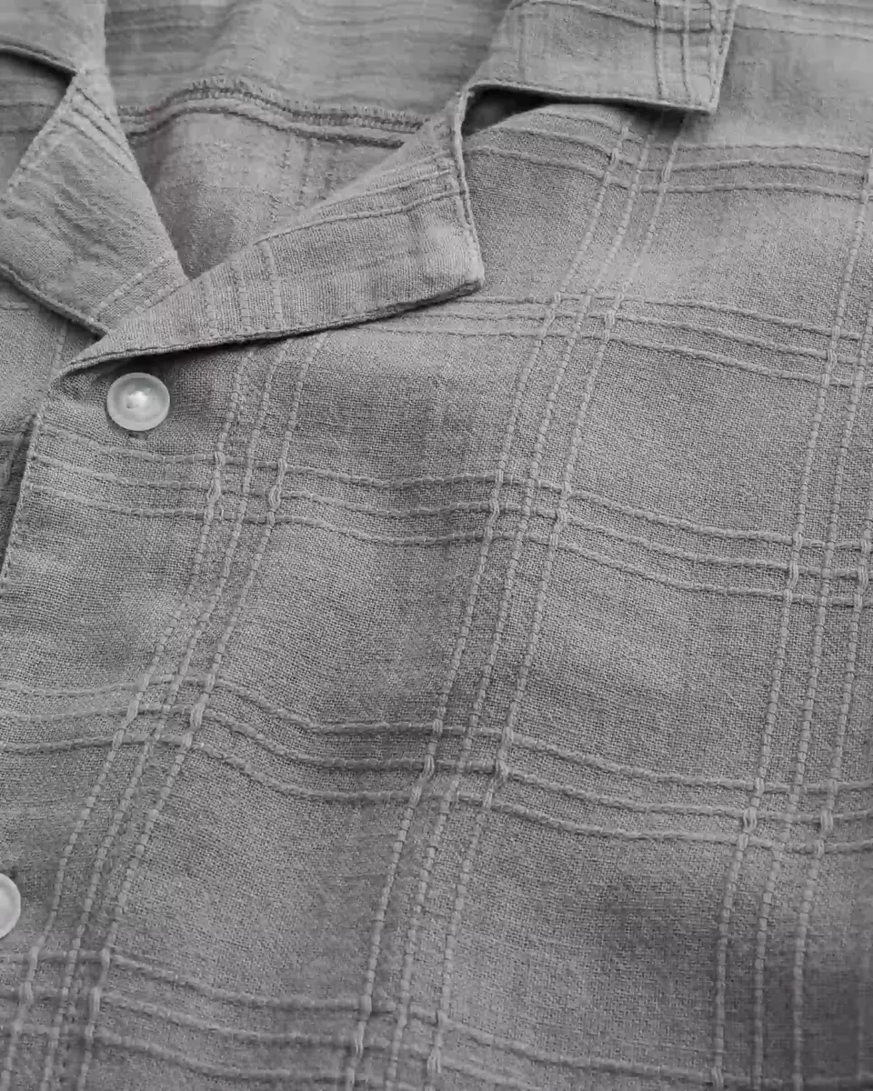 Den här klassiska kortärmade skjortan är gjord i en mjuk linneblandning och har ett strukturmönster. Lägerkrage, hel knappstängning. Boxig passform. Importerad.