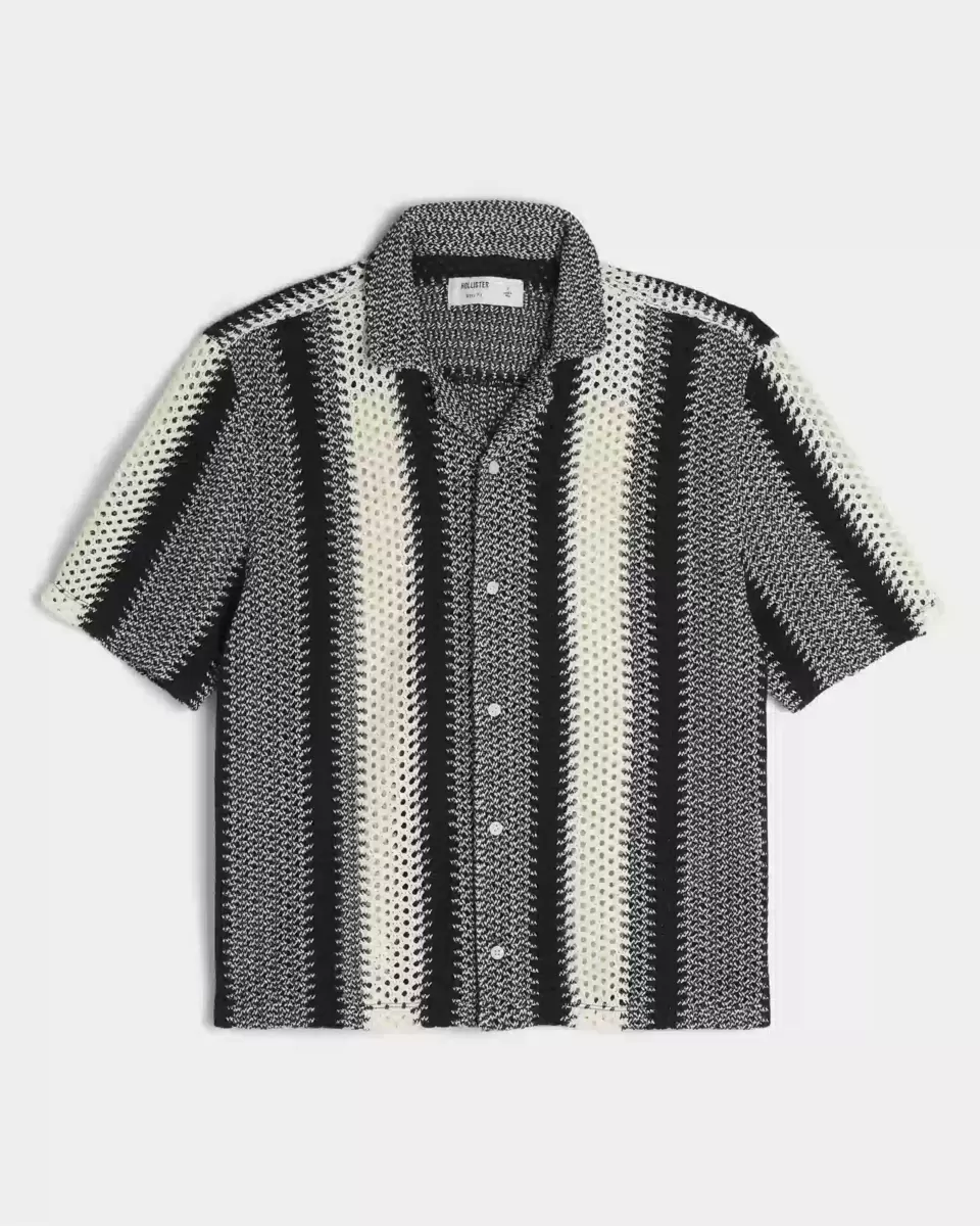 En kortärmad skjorta i mjukt virkat tyg med lägerkrage. Boxig passform. Importerad.