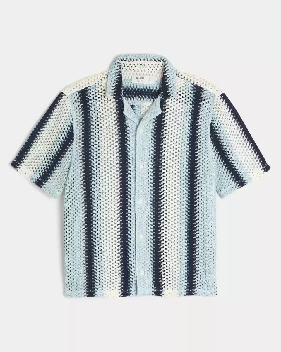 En kortärmad skjorta i mjukt virkat tyg med lägerkrage. Boxig passform. Importerad.