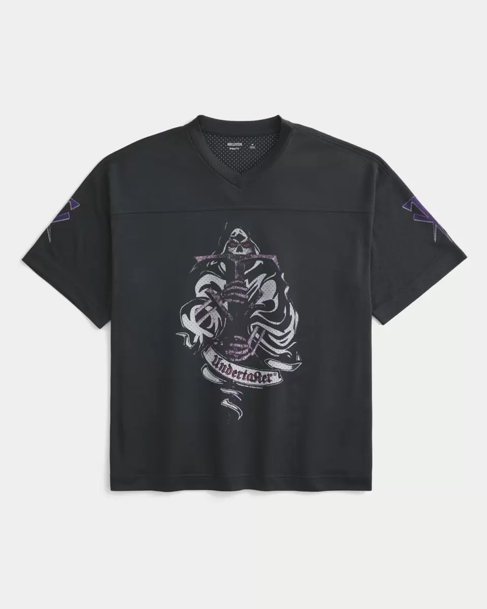 Den här fotbollströjan är tillverkad av mjukt meshtyg och har officiellt licensierad Undertaker WWE-grafik på framsidan, baksidan och ärmarna. V-ringning, korta ärmar. Baggy Fit. Importerad.