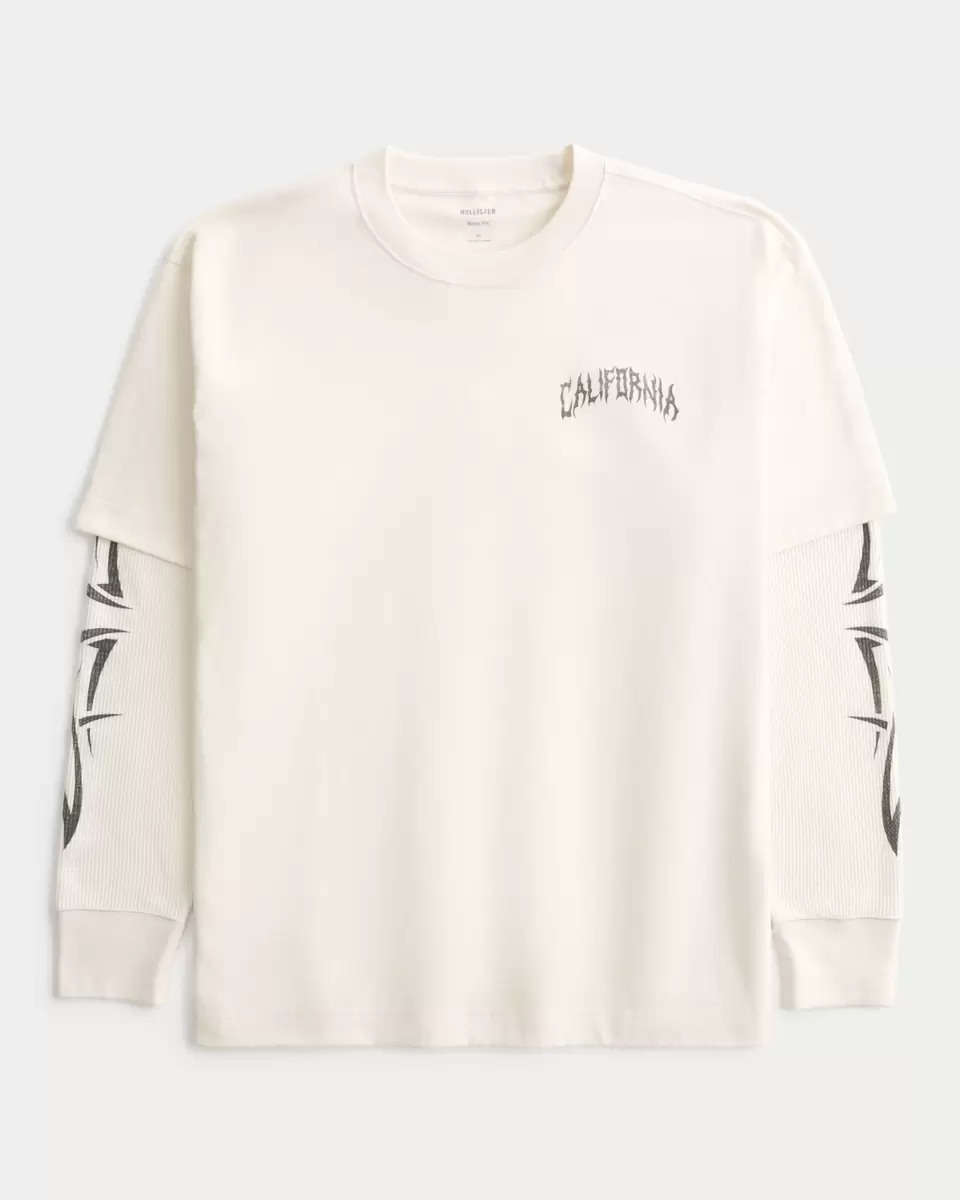 En supermjuk t-shirt med Y2K-inspirerad California-tryck på vänster bröst och långa ärmar av termotyg för en lagerlook. Crew urringning. Boxig passform. Importerad.