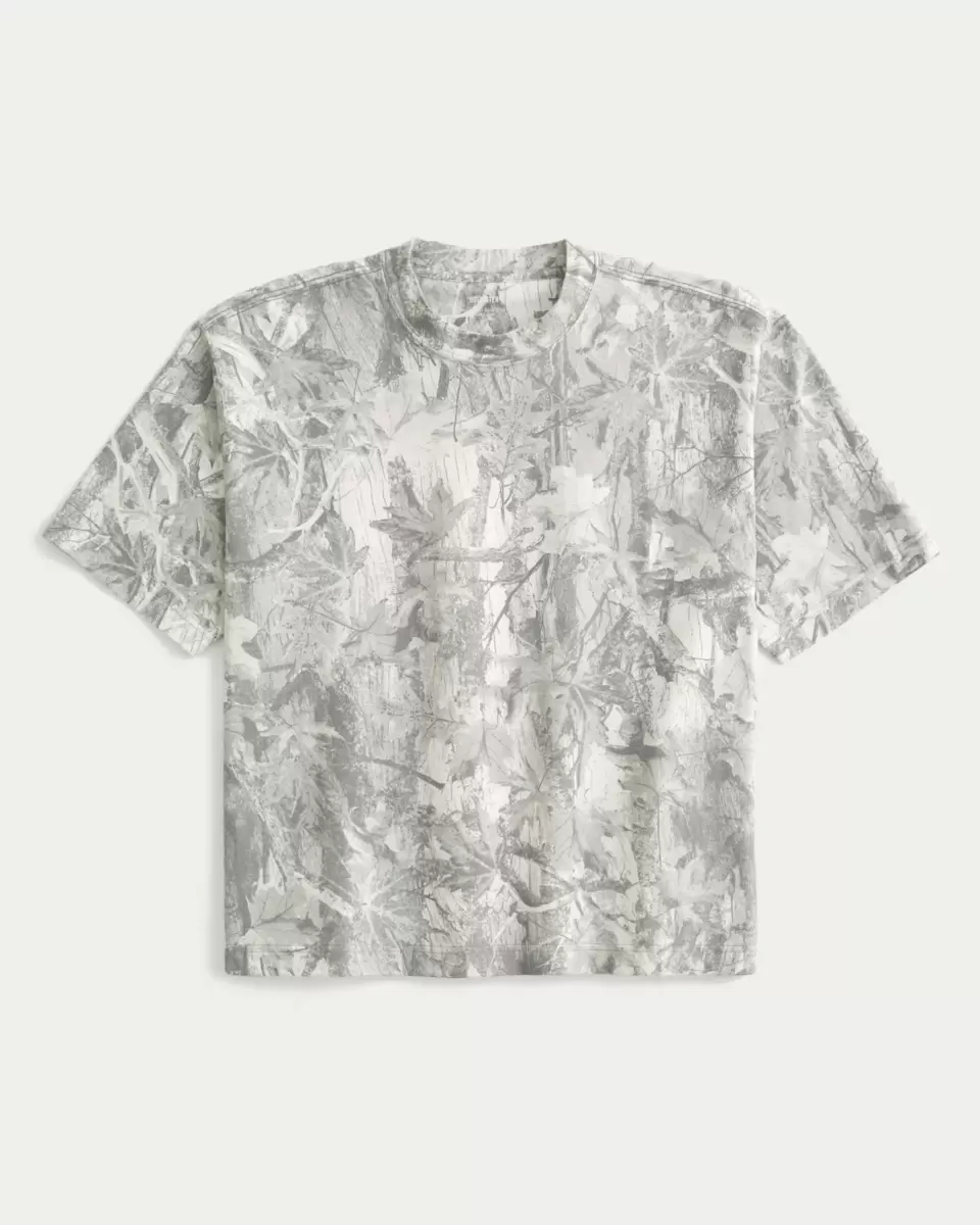 Denna klassiska t-shirt är gjord av 100 % supermjuk, kraftig bomull och har ett heltäckande camomönster. Designad med en boxig siluett, avskuren längd, rund halsringning och korta ärmar. Boxy Crop Fit. Importerad.