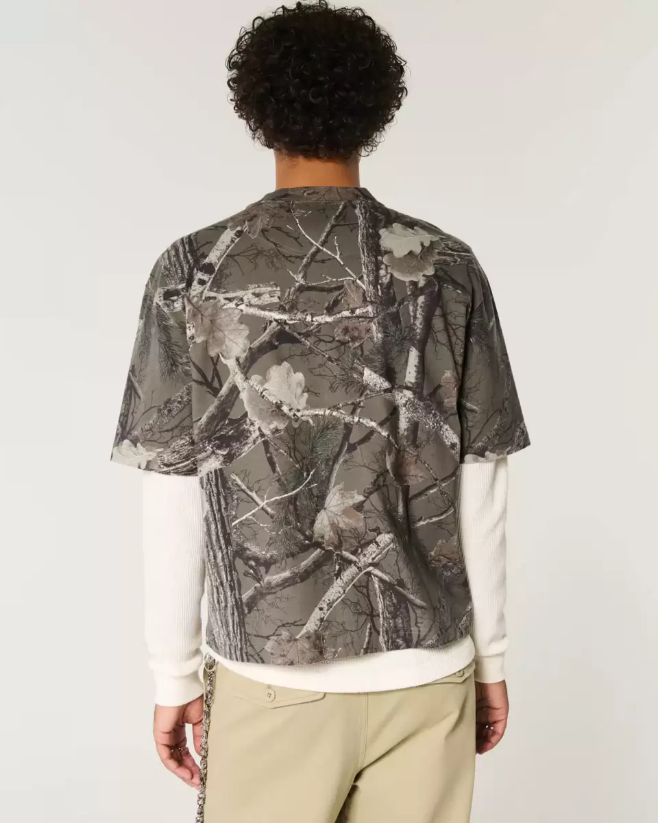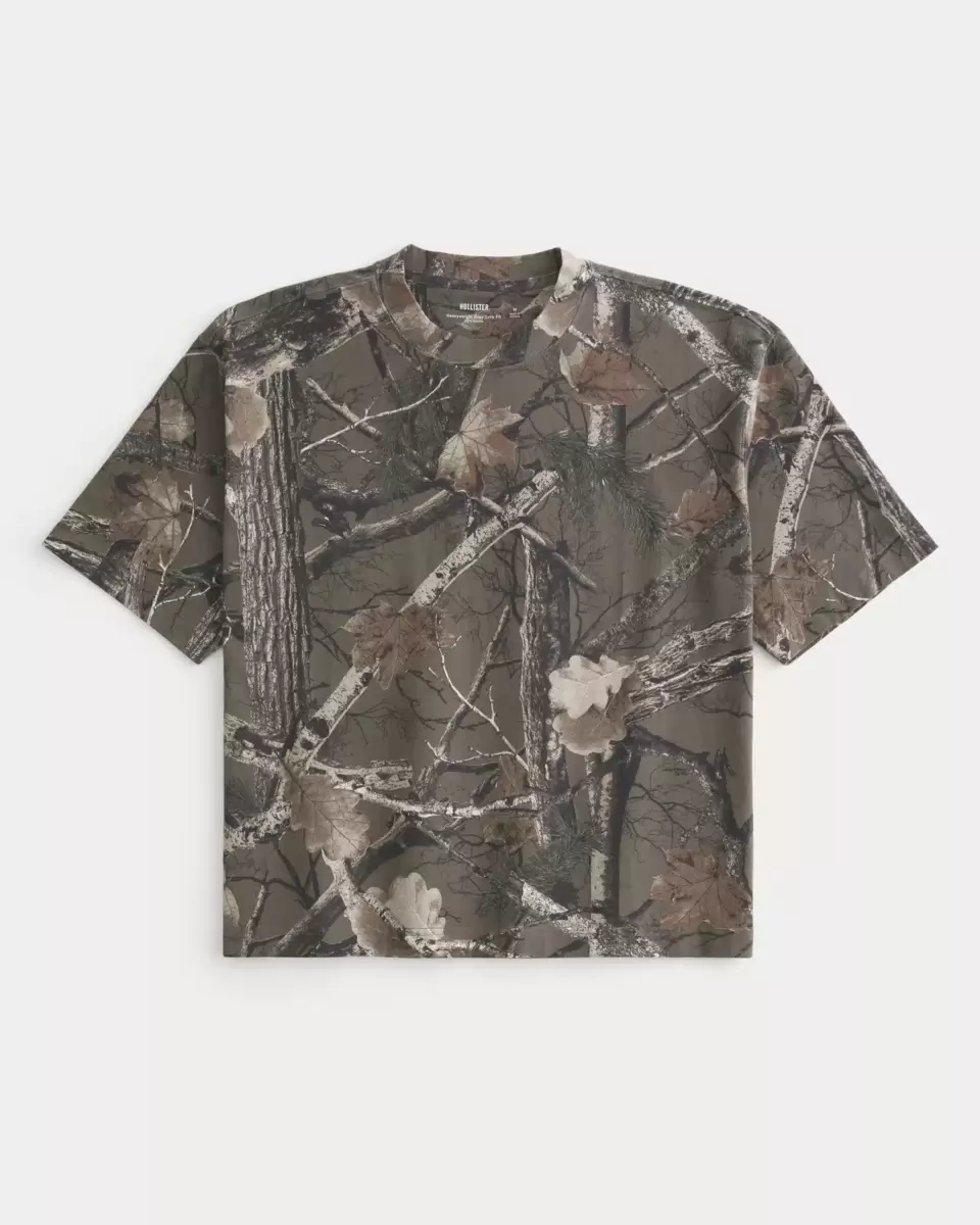 En ultrabekväm t-shirt i kraftig 100 % bomull, med ett heltäckande camomönster. Rund halsringning, korta ärmar. Boxy Crop Fit. Importerad.