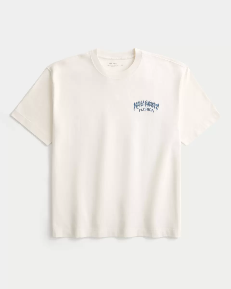 En supermjuk, tung t-shirt i 100 % bomull med grafik från Key West Florida på vänster bröst och rygg. Rund halsringning, korta ärmar. Boxy Fit.