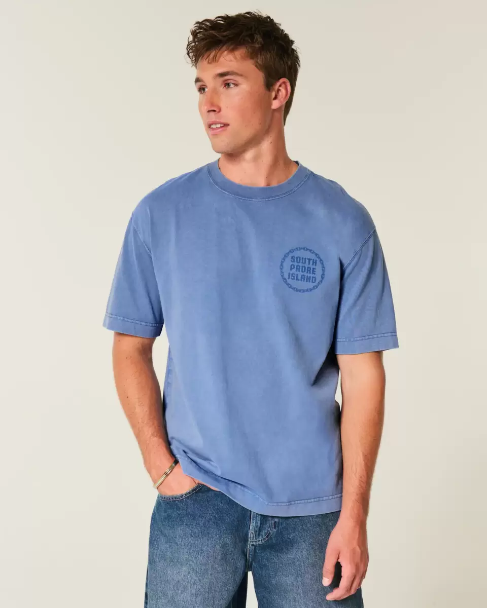 En supermjuk, tung t-shirt i 100 % bomull med grafik från South Padre Island Texas på vänster bröst och rygg. Rund halsringning, korta ärmar. Boxy Fit.