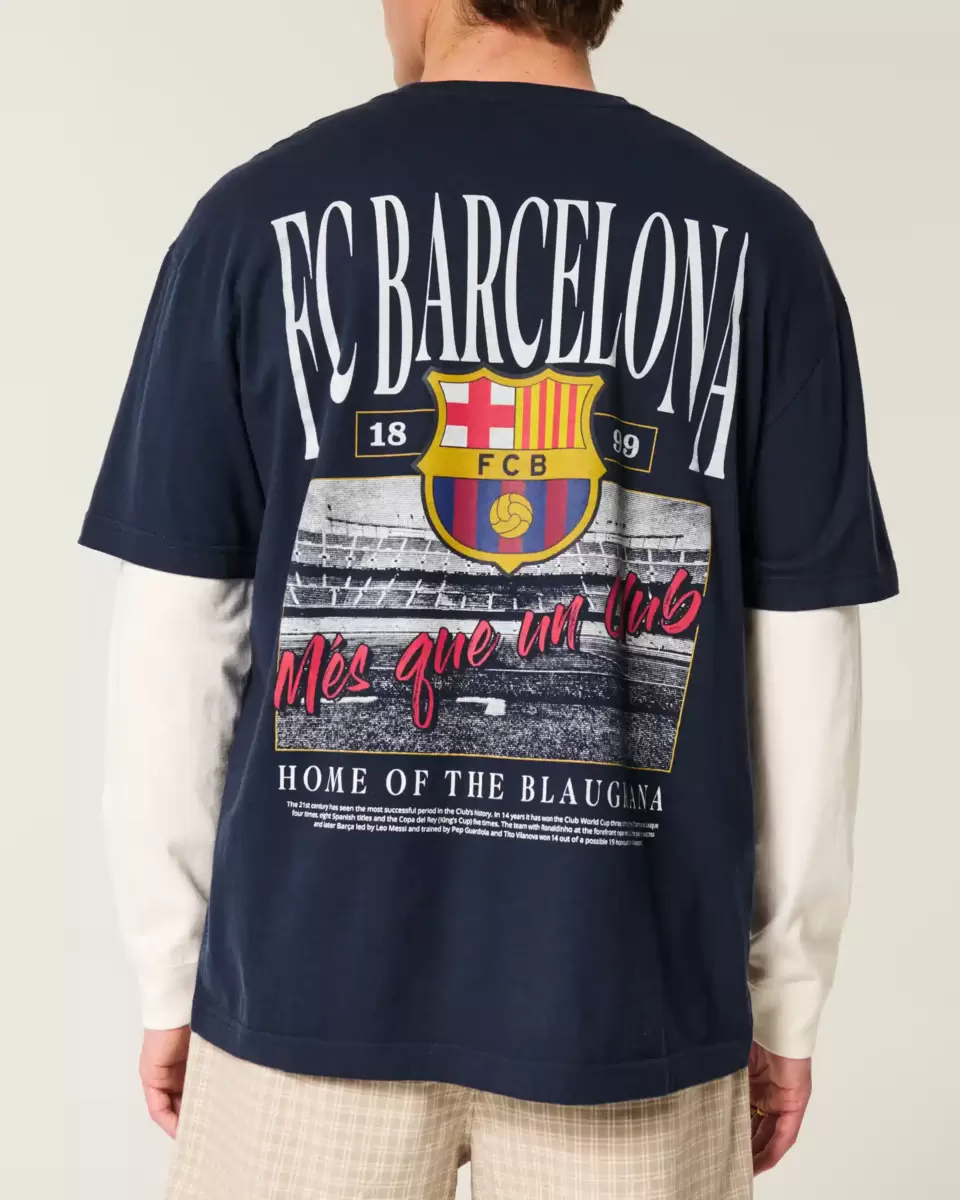 En supermjuk t-shirt i 100 % bomull med officiell licensierad FC Barcelona-grafik på vänster bröst och rygg. Rund halsringning, korta ärmar. Importerad.