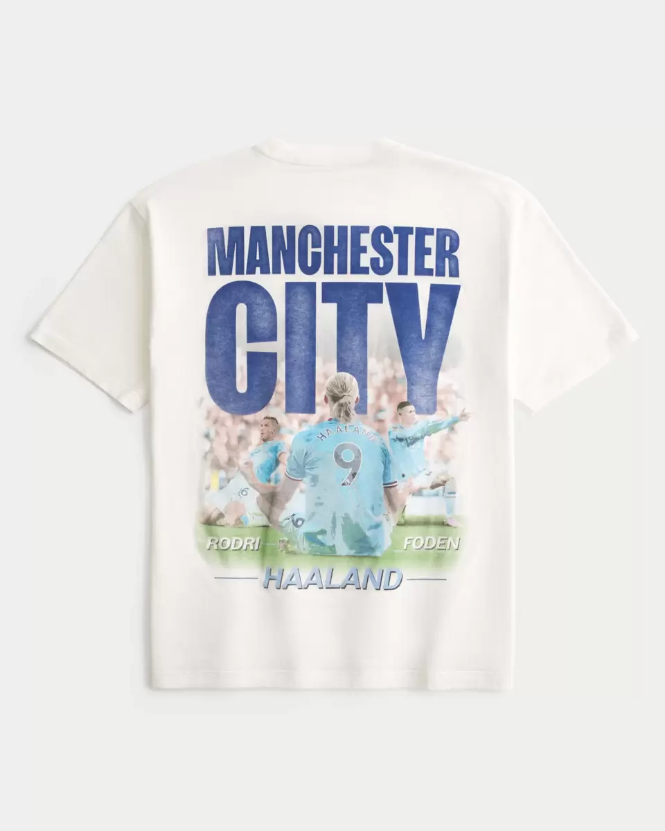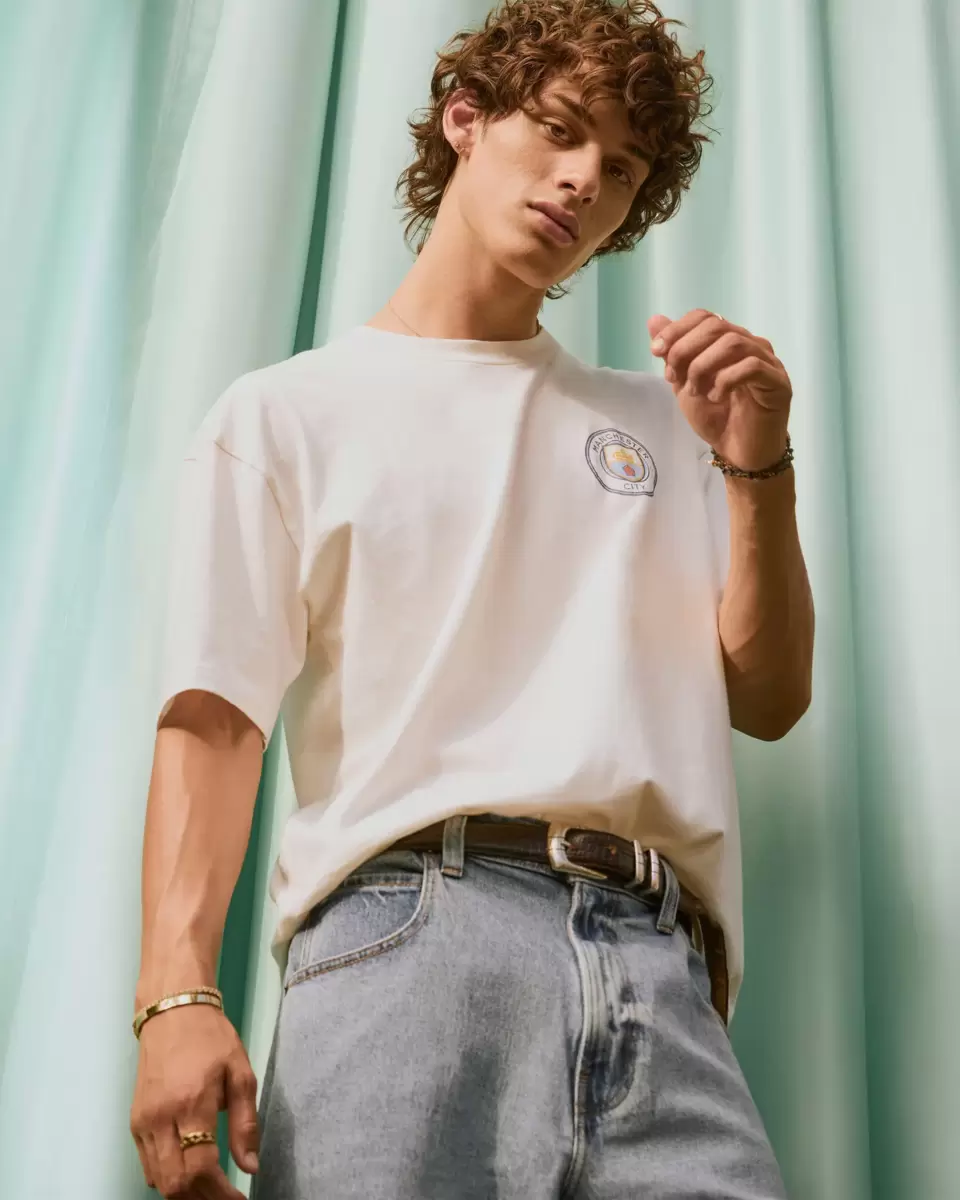 En supermjuk t-shirt i 100 % bomull med officiellt licensierade Manchester City F.C. tryck grafik på vänster bröst och rygg. Rund halsringning, korta ärmar. Importerad.
