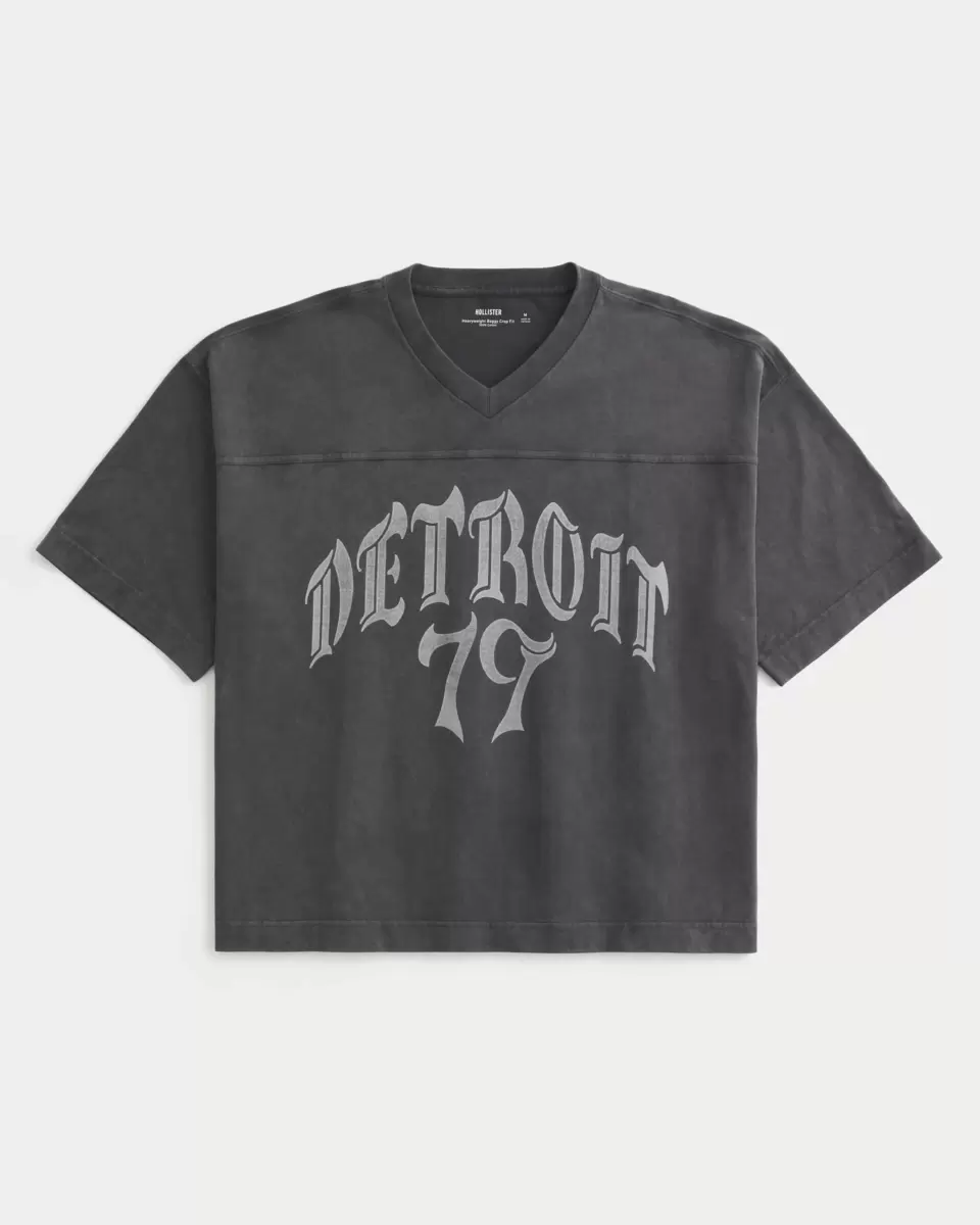 Denna supermjuka fotbollströjan är gjord av supermjuk, tung 100 % bomull. Med grafik från Detroit, v-ringning, korta ärmar. Baggy Crop Fit.
