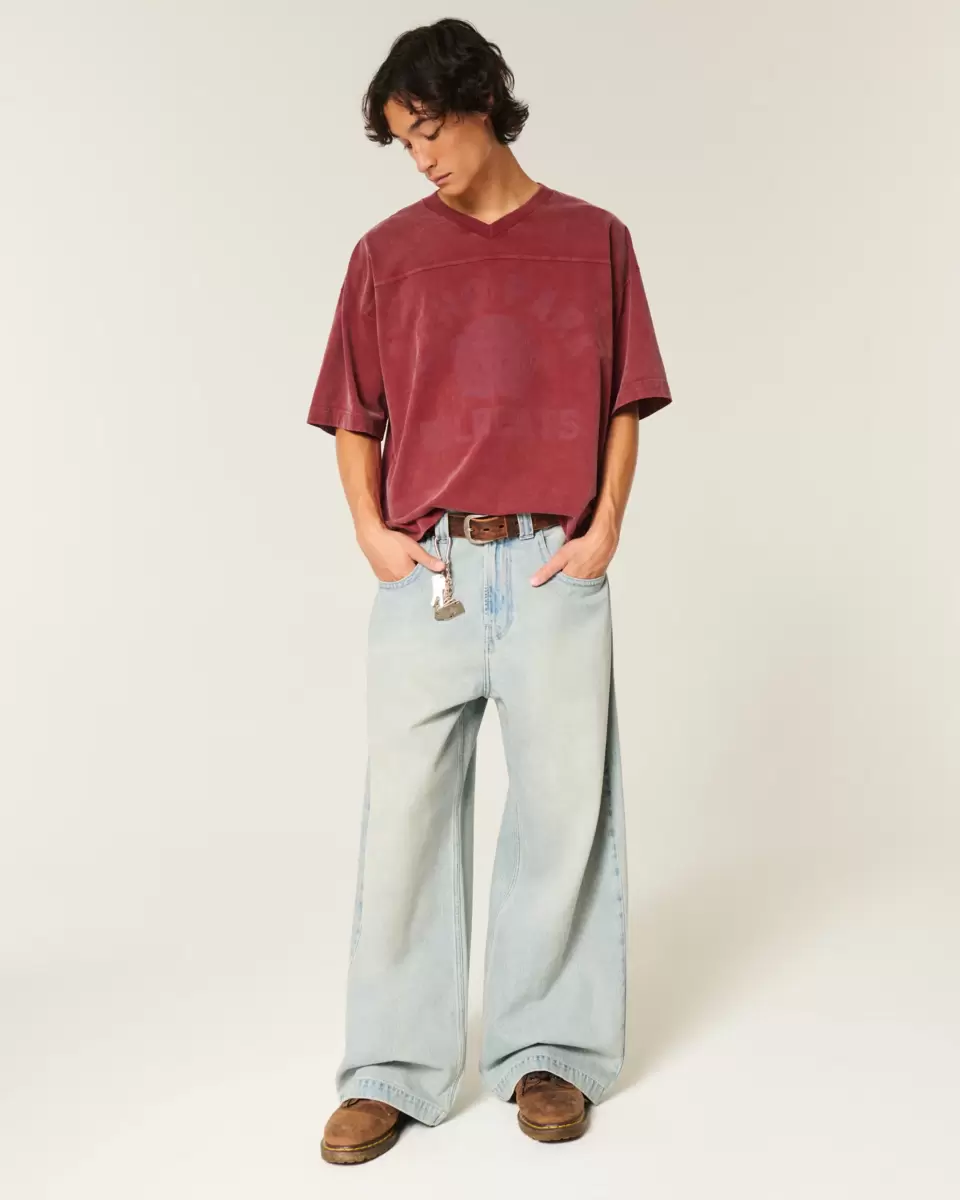 Denna supermjuka t-shirten är gjord av 100 % tjock bomull och har en bleka varsity-stil med Echo Park Wildcats-tryck. V-ringning, korta ärmar. Baggy Crop Fit.