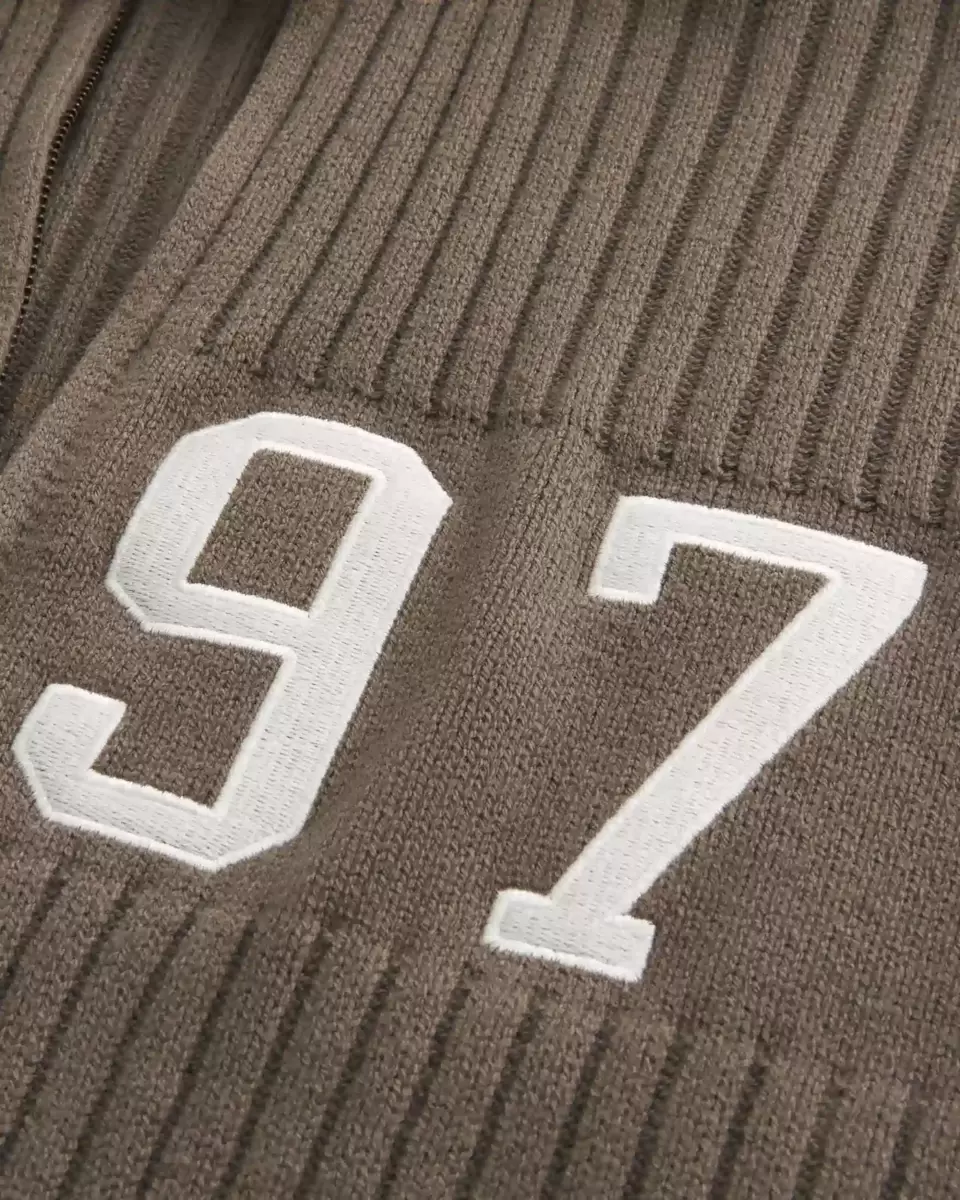 Denna supermjuka tröjan har en mock-neck-krage, full dragkedja och sifferbroderier. Ribbade kanter, långa ärmar. Avslappnad passform. Importerad.