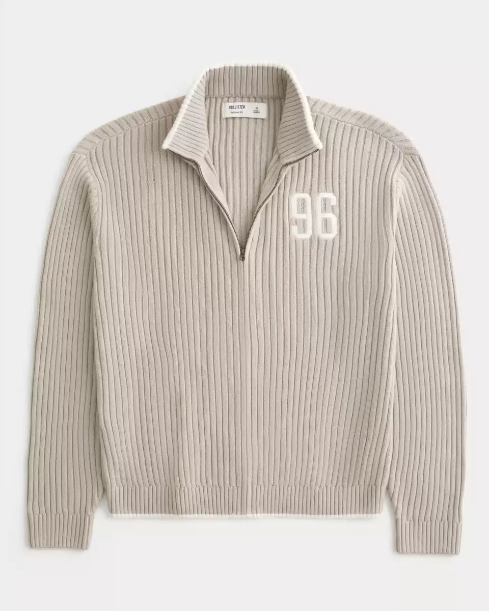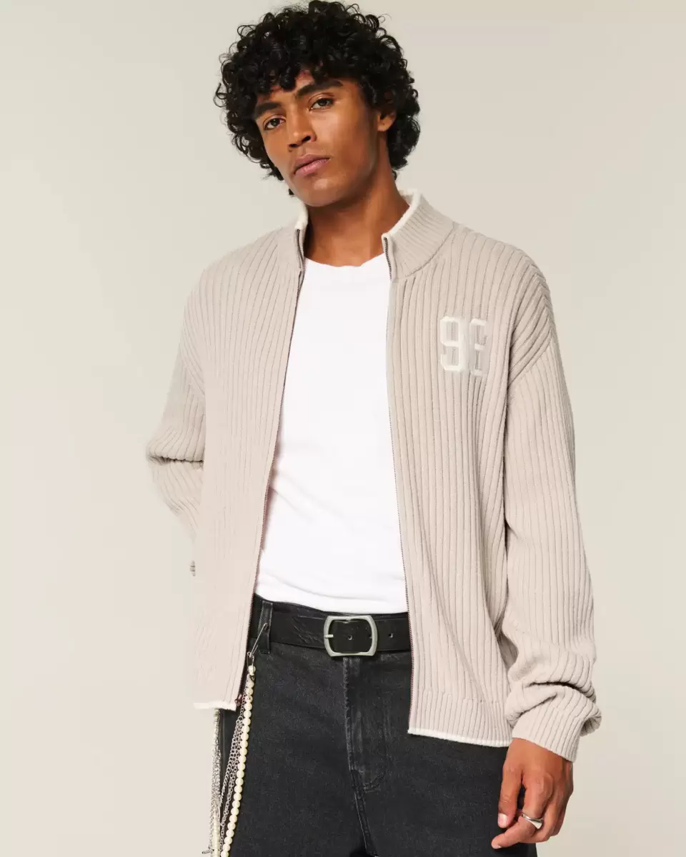 Denna supermjuka tröjan har en mock-neck-krage, full dragkedja och grafiskt broderi på vänster bröst. Ribbade kanter, långa ärmar. Avslappnad passform. Importerad.