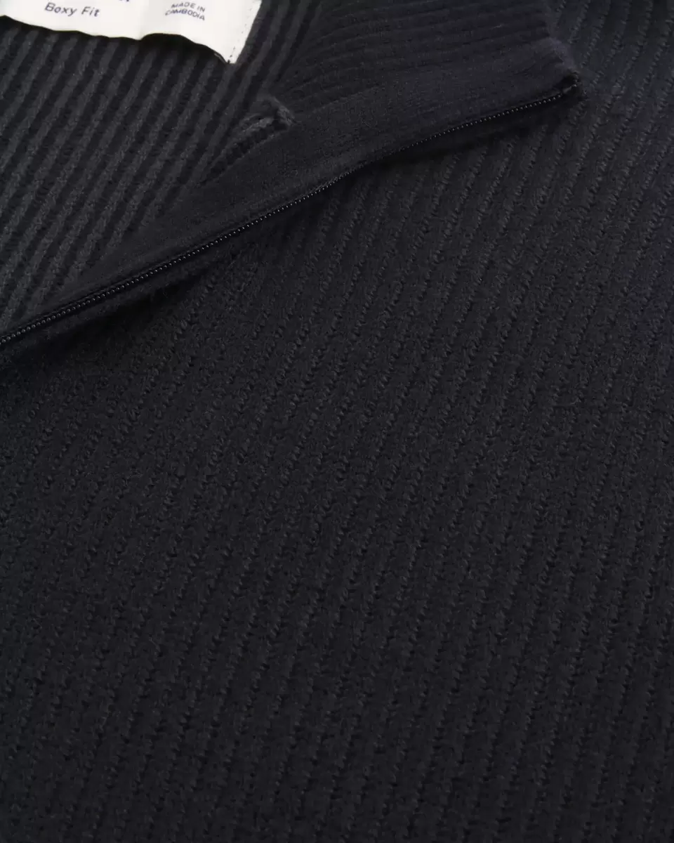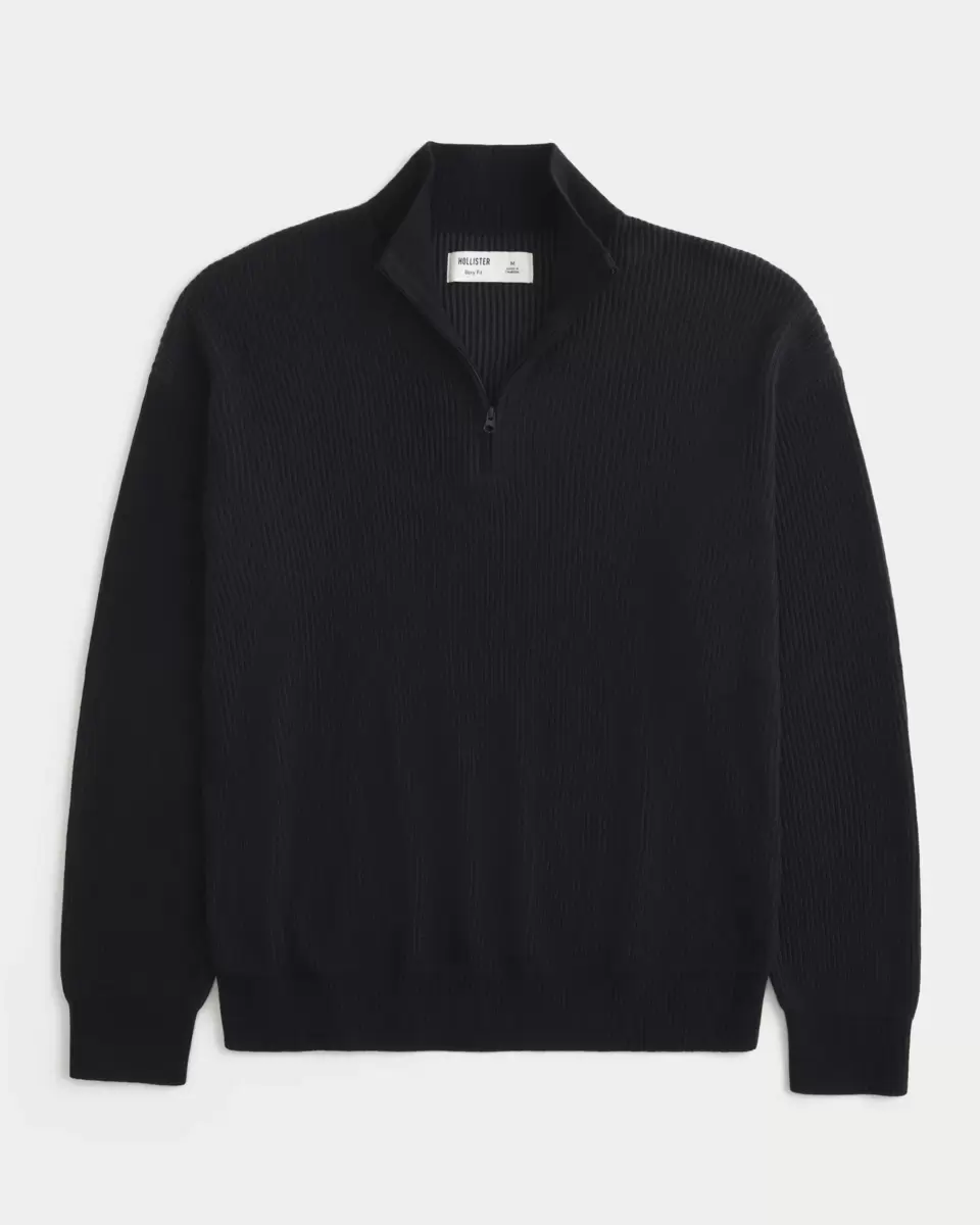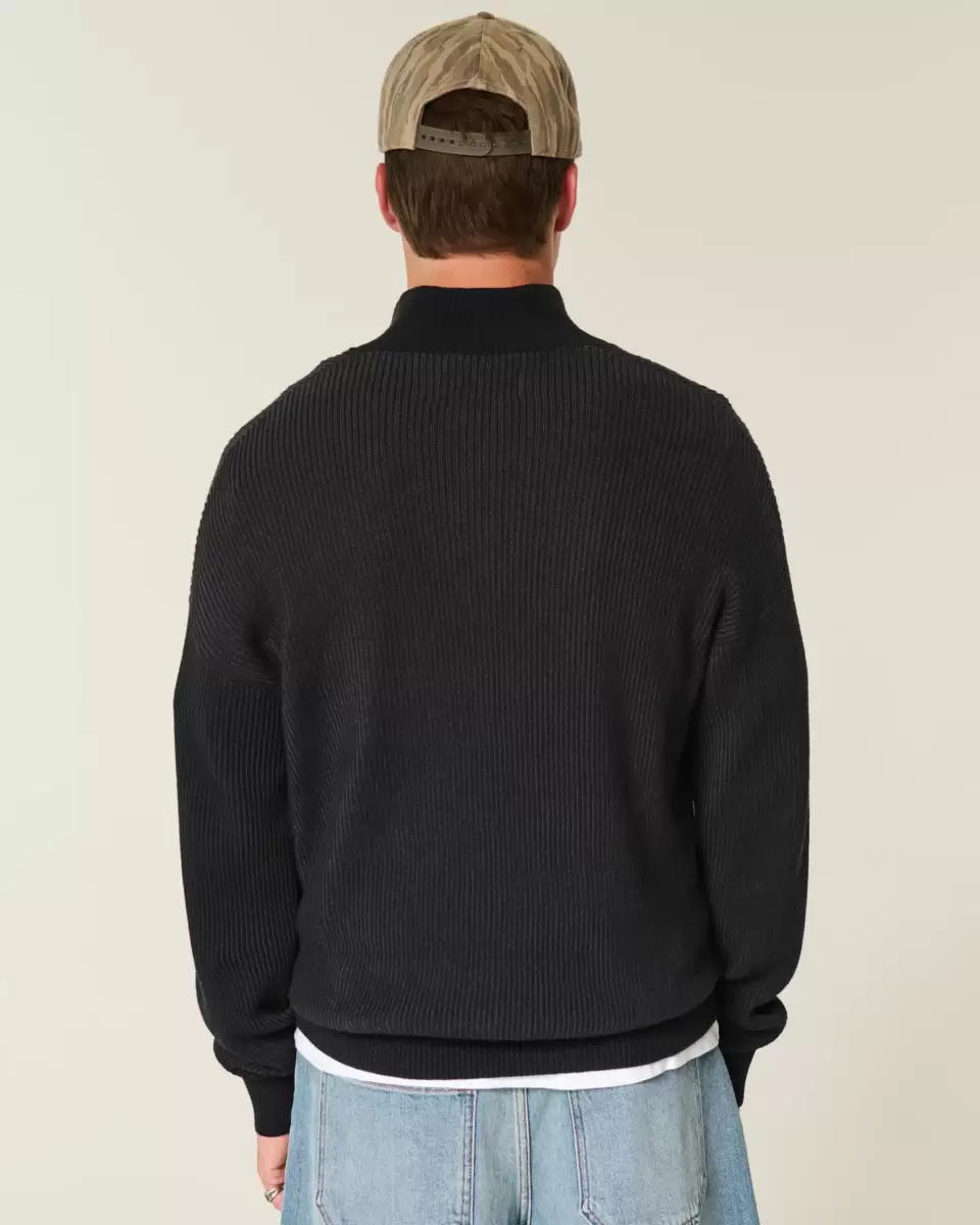 En supermjuk och bekväm stickad tröja med en mock-neck-krage och kvartsdragkedja. Långa ärmar. Boxig passform. Importerad.