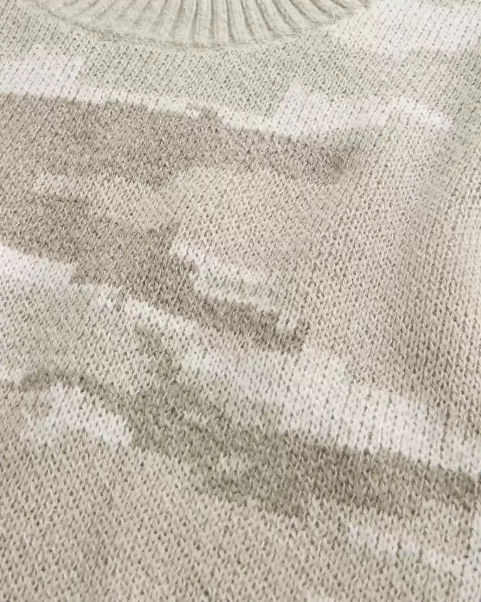 En supermjuk tröja med ett heltäckande camo-intarsiamönster. Rund halsringning, långa ärmar, ribbad kant. Boxig passform. Importerad.