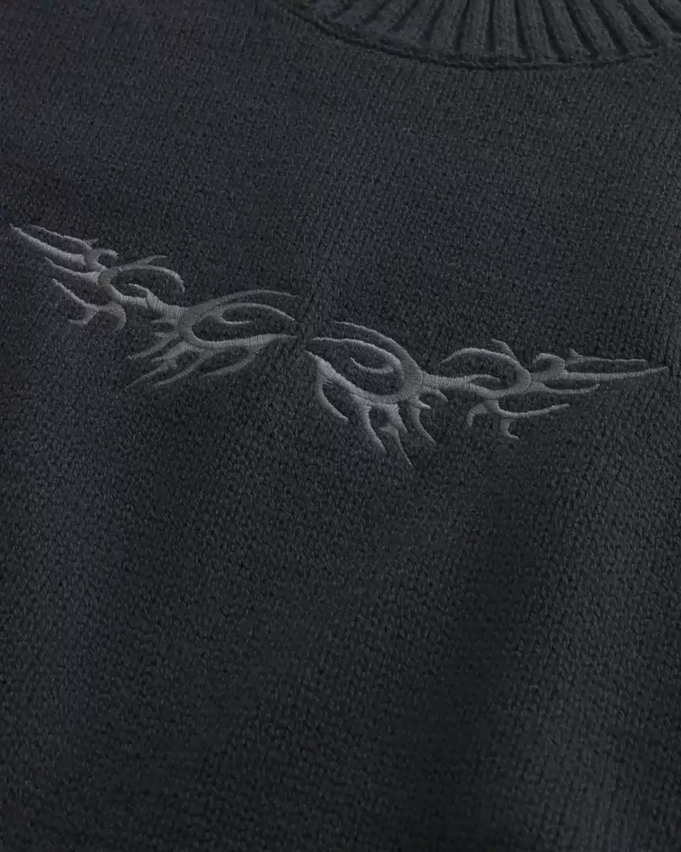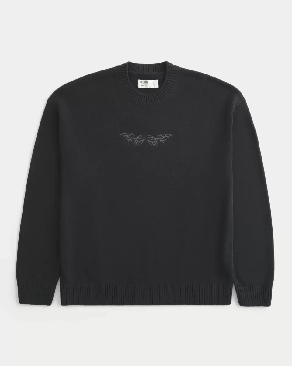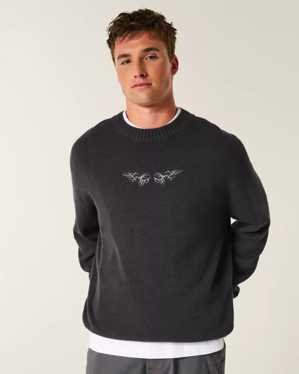Denna supermjuka tröjan har flammande grafiska broderier på mitten av bröstet. Rund halsringning, långa ärmar, ribbad kant. Boxig passform. Importerad.