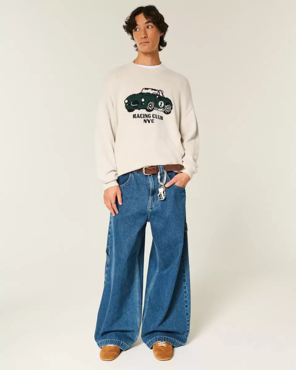 En supermjuk och skön tröja med Racing Club NYC intarsia-grafik. Rund halsringning, långa ärmar, ribbad kant. Boxig passform.