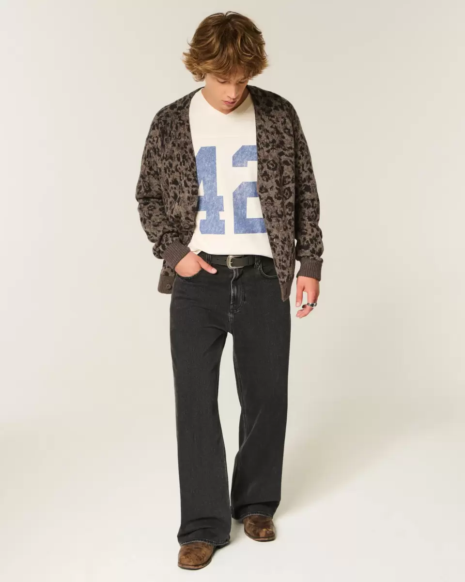 En supermjuk och bekväm kofta med v-ringning och knappstängning. Ribbade kanter, långa ärmar, all-over leopardmönster. Boxig passform. Importerad.