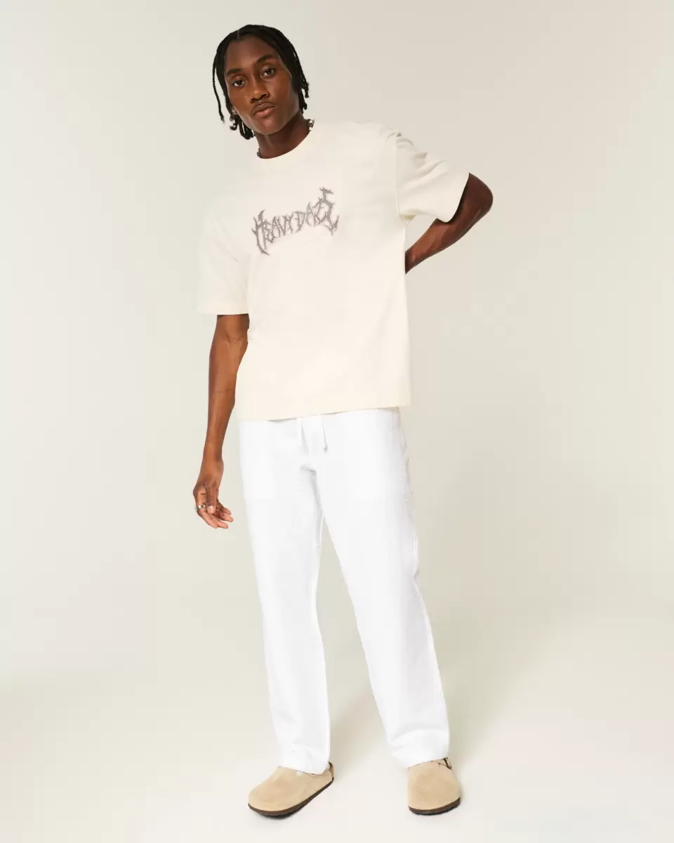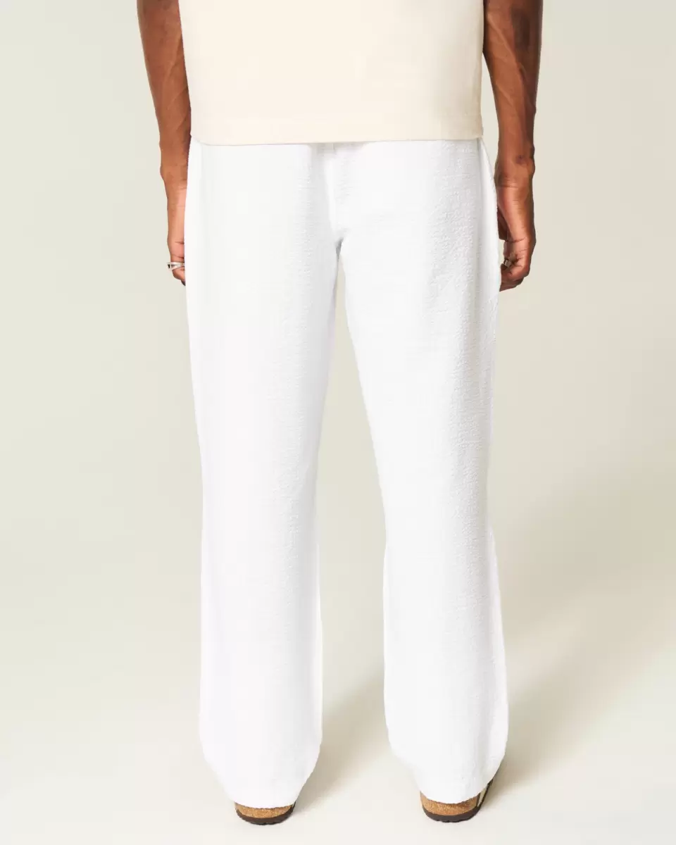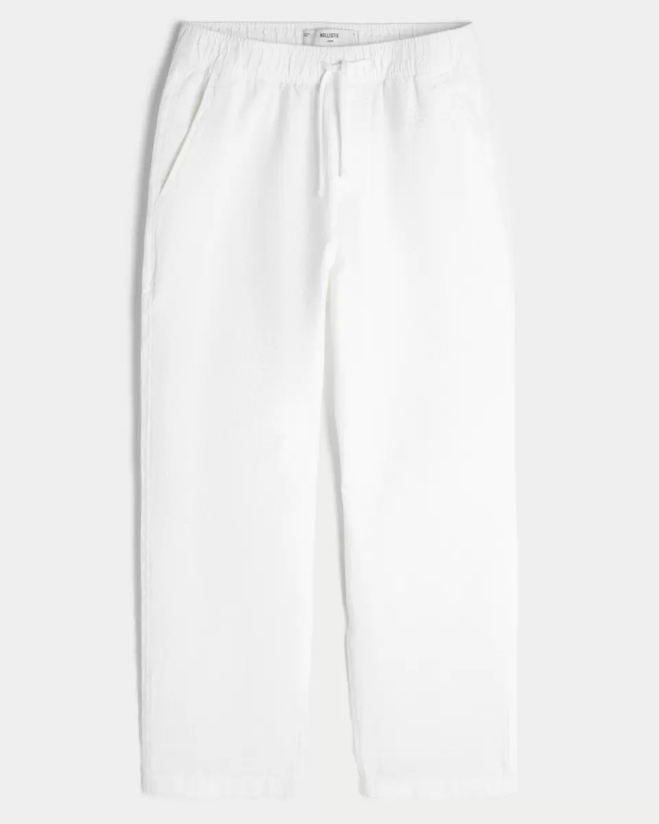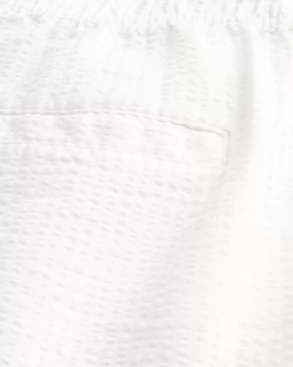 Bekväma byxor i mjukt seersucker-tyg, designade med lösa ben och dragsko i midjan. Fickor. Importerad.