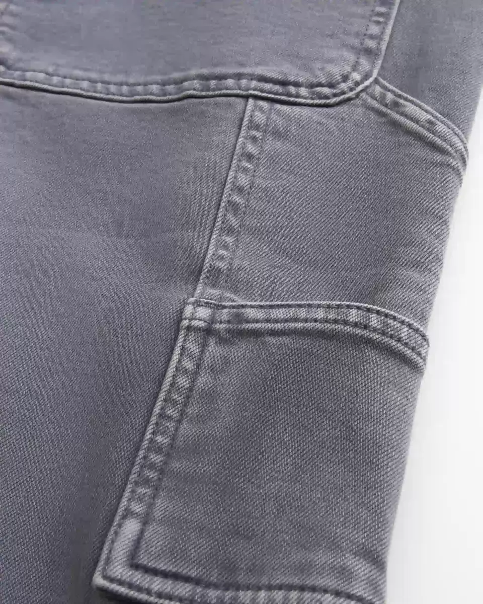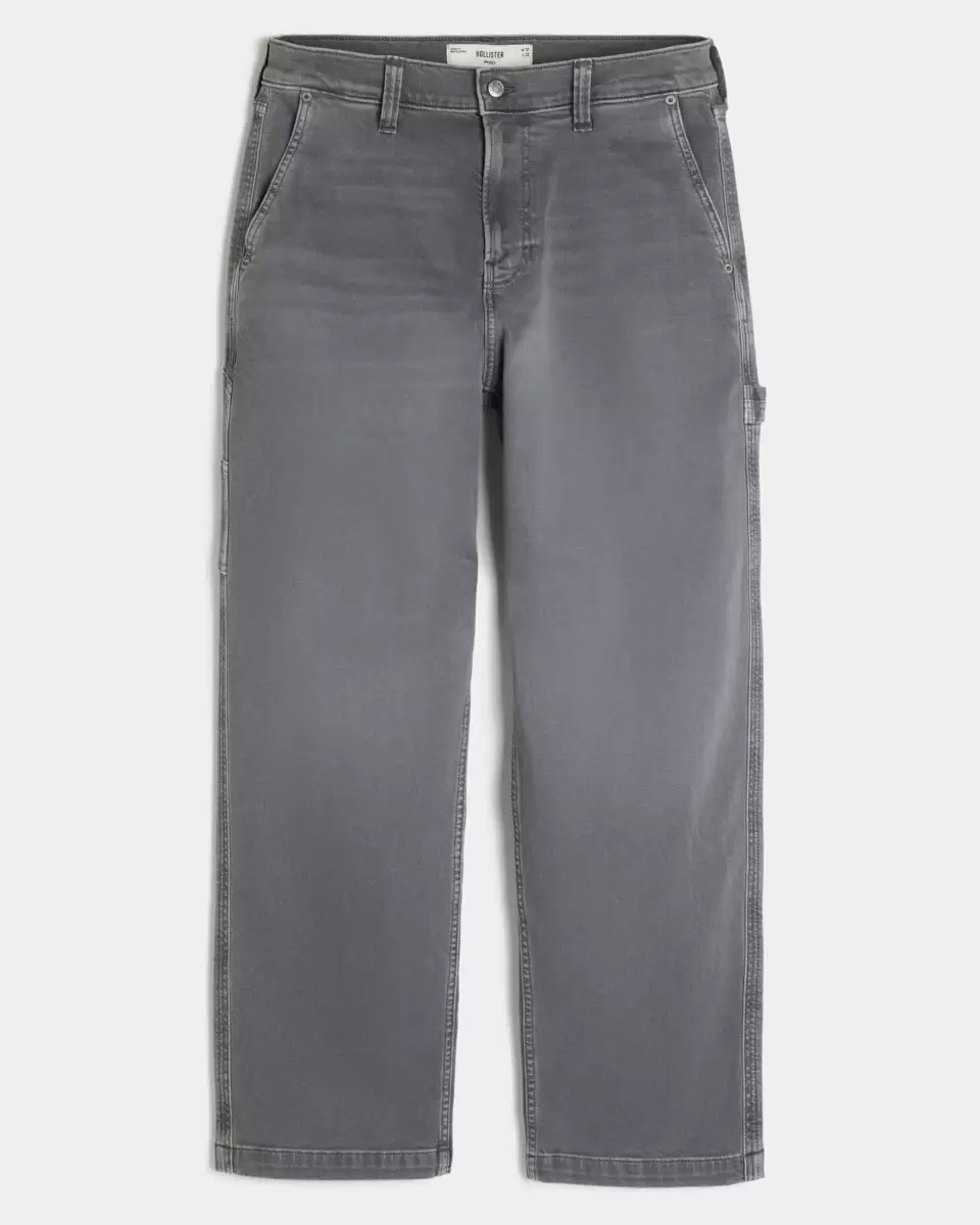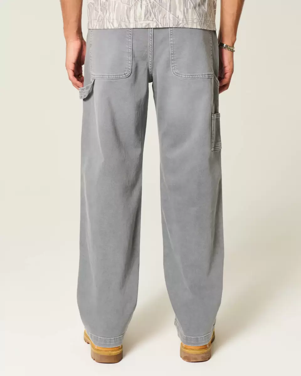 Bekväma denimjeans designade med säckiga ben, vänster målarögla och extra fickor. Blekning och morrhår. Importerad.