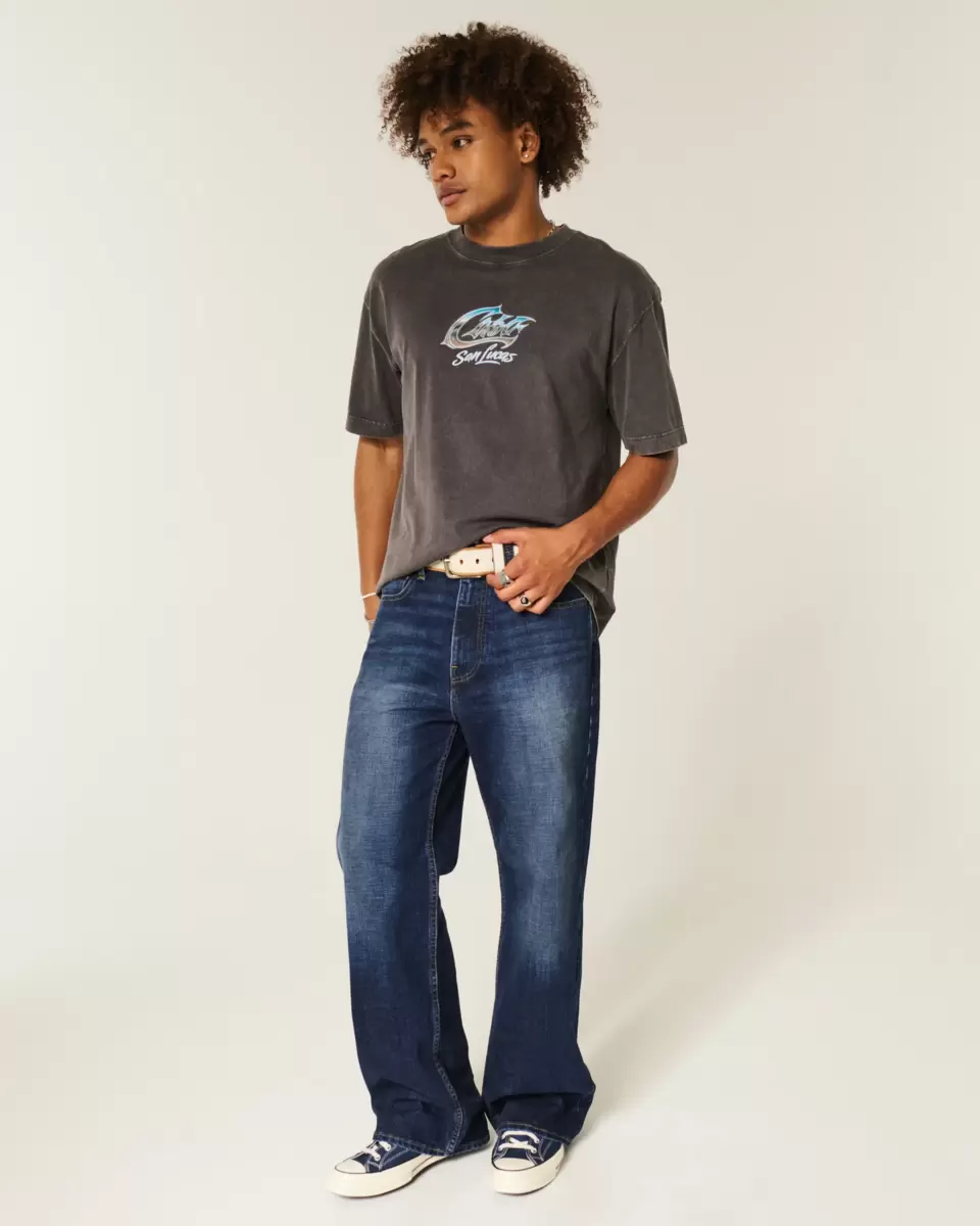 Bekväma jeans i mörk tvätt, designade med säckiga ben och öppning för bootcut. Blekning, morrhår, ikonisk 5-ficksstyling. Importerad.