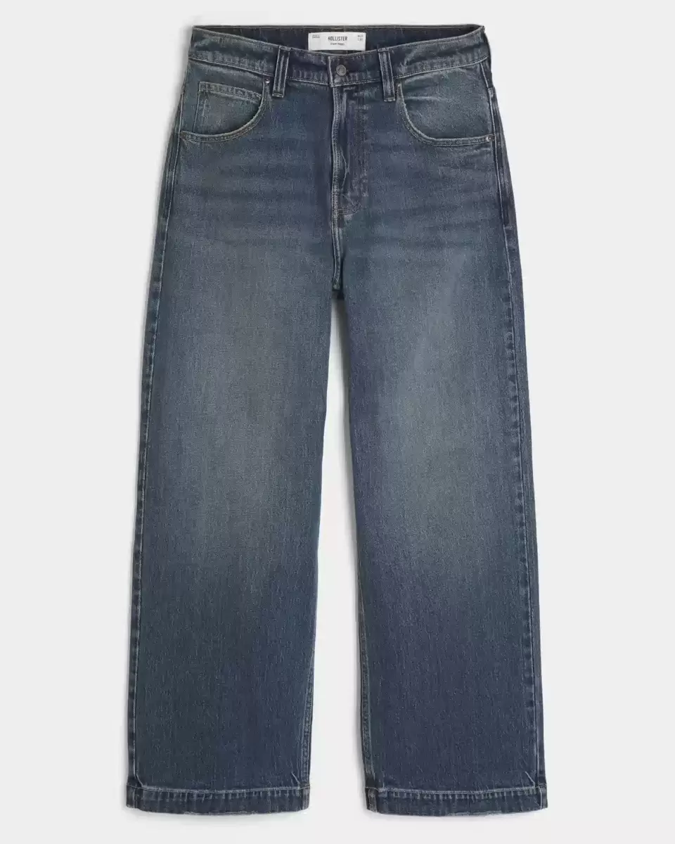 Bekväma jeans i mörk tvätt, designade med ett superbaggy ben. Broderad tärningsgrafik på bakfickan, blekning, morrhår. Importerad.