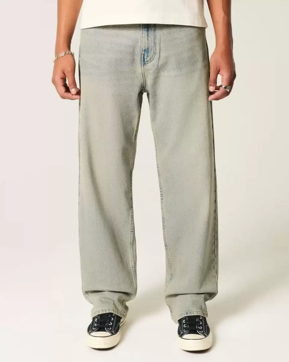 Bekväma jeans i lätt tvätt, designade med påsiga ben. Blekning, morrhår. Importerad.