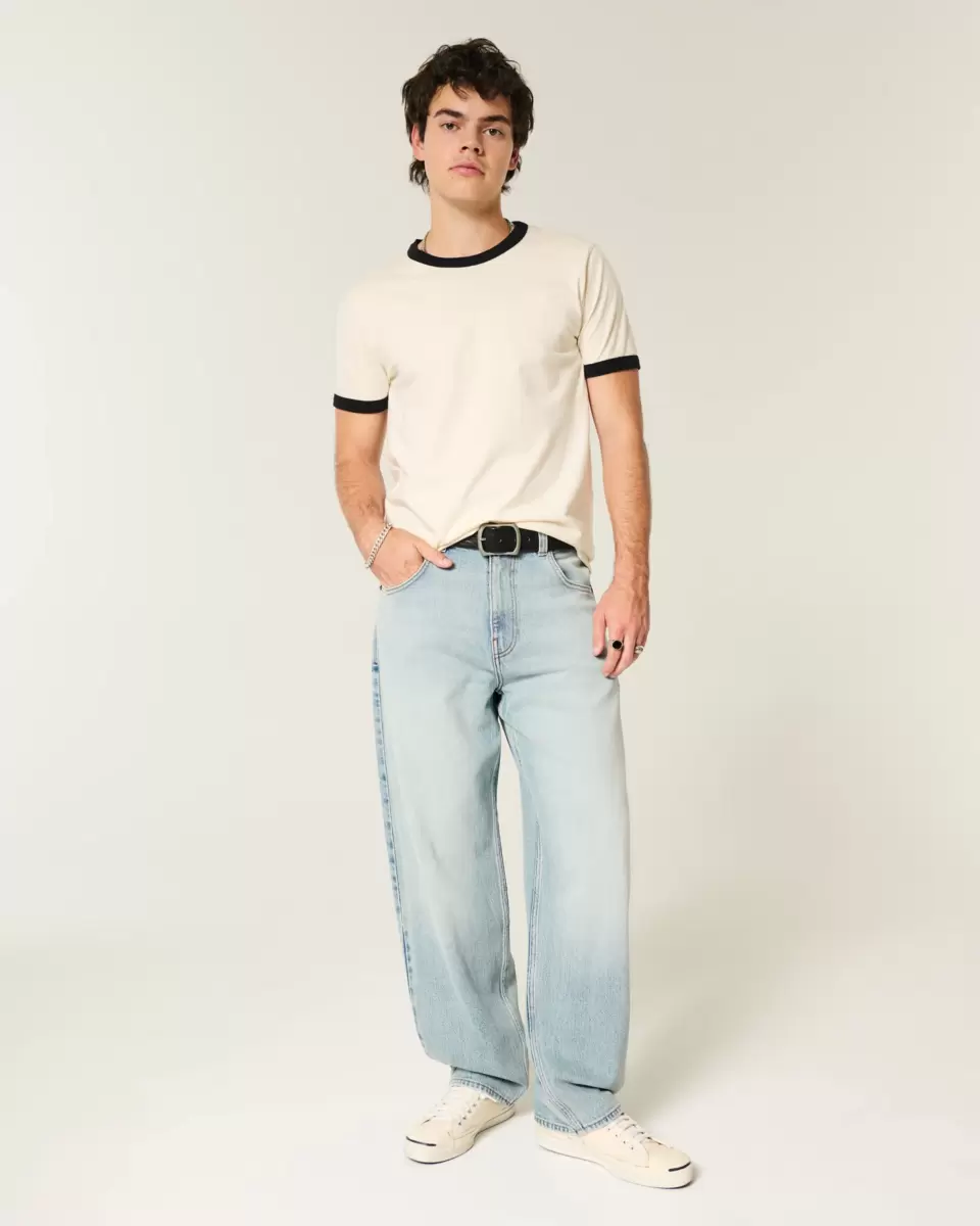 Bekväma skaterjeans i lätt tvätt, designade med påsiga ben. Fading. Importerad.