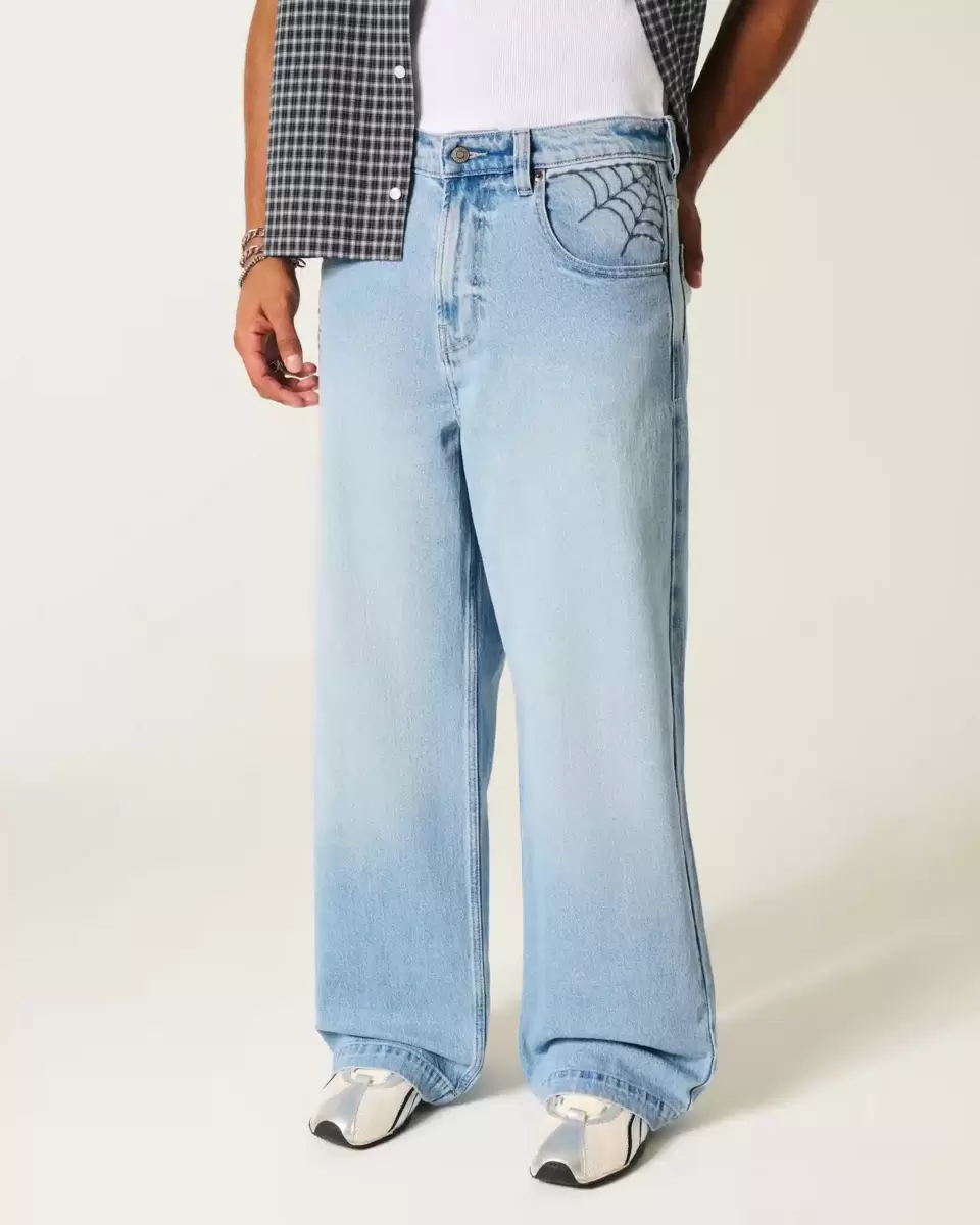 Bekväma jeans i lätt tvätt, designade med ett superbaggy ben. Ikonisk 5-ficksstyling, spindel- och webbbroderi, blekning. Importerad.