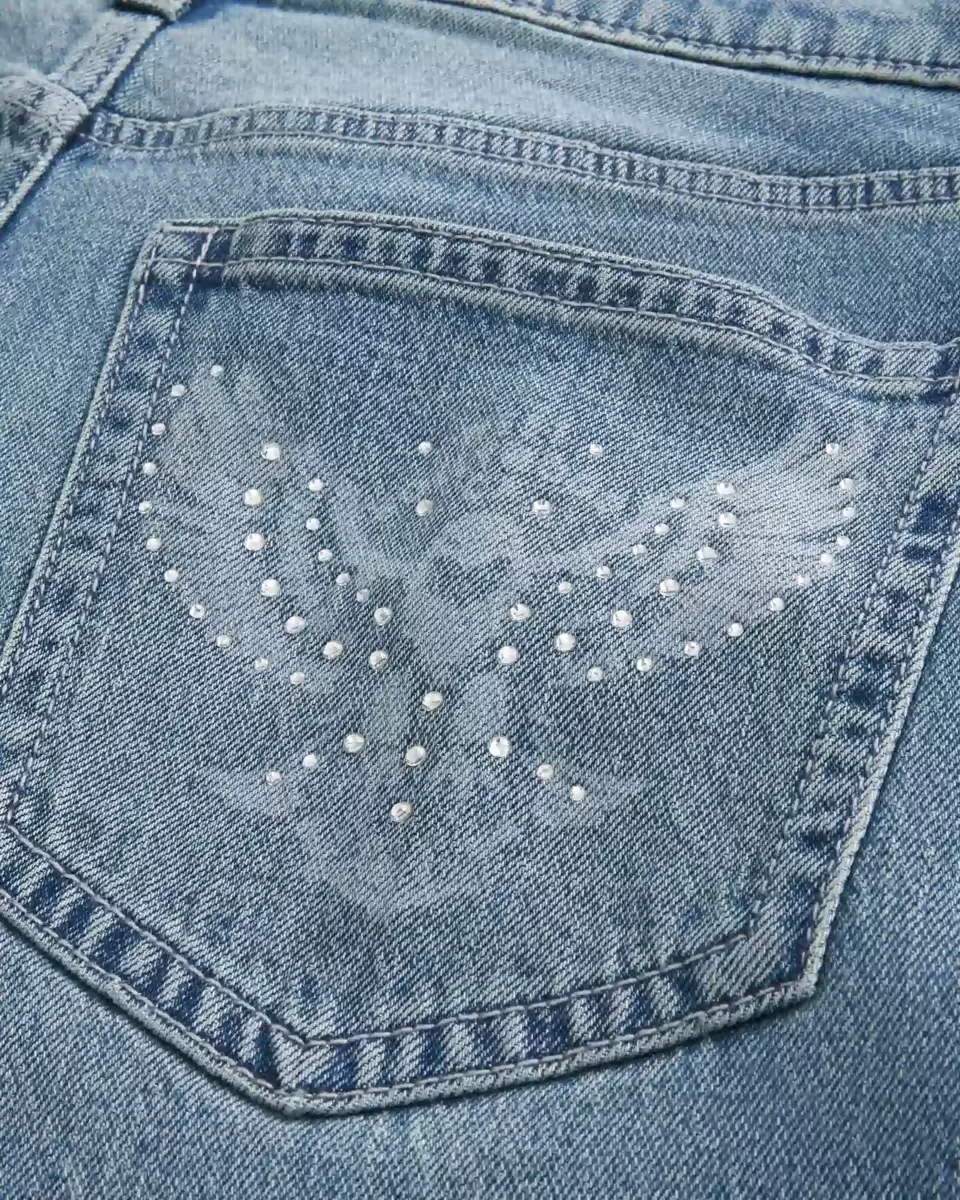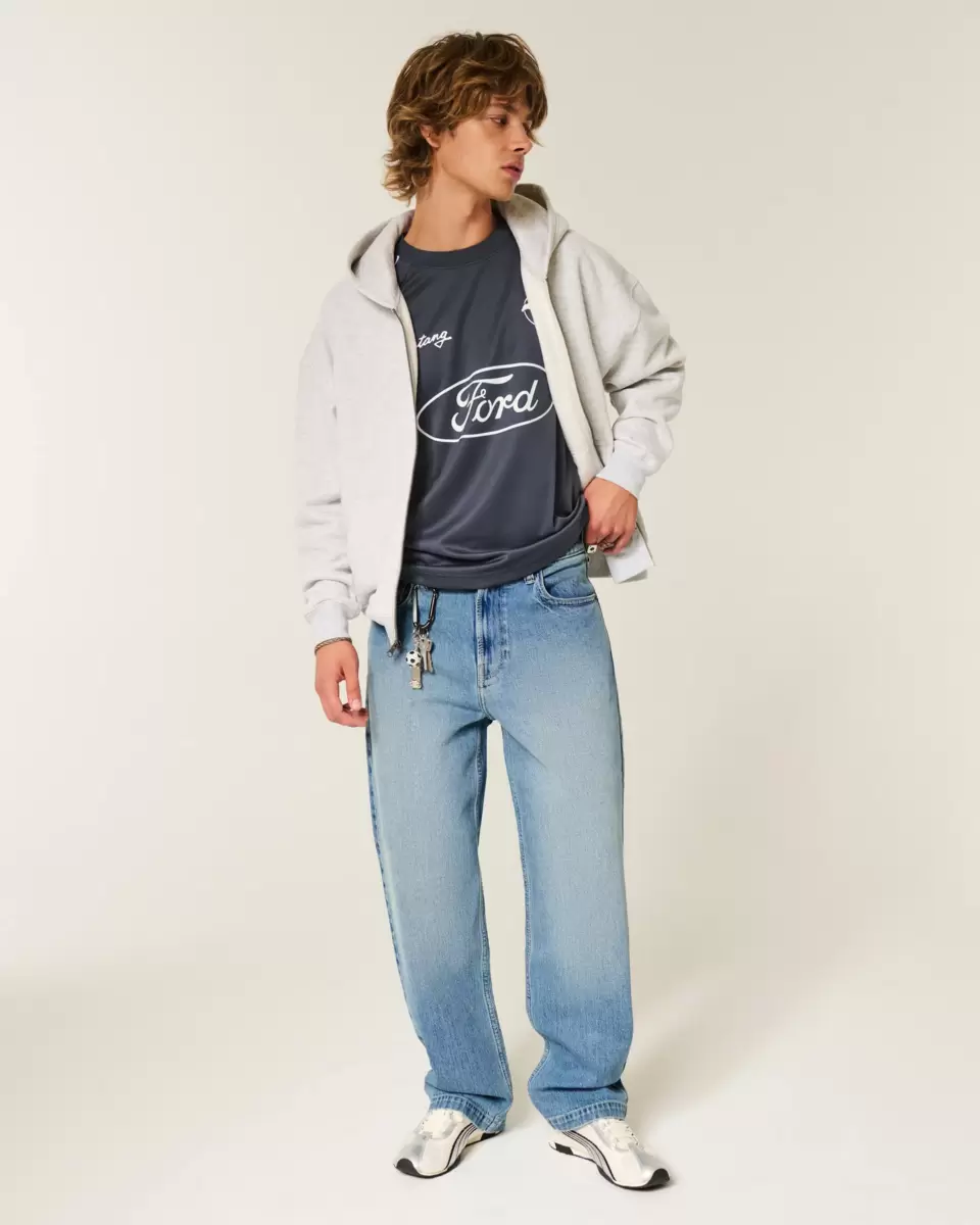 Bekväma jeans i medium tvätt, designade med säckiga ben. Med en örngrafik med glänsande detaljer på bakfickan, bleknar. Importerad.
