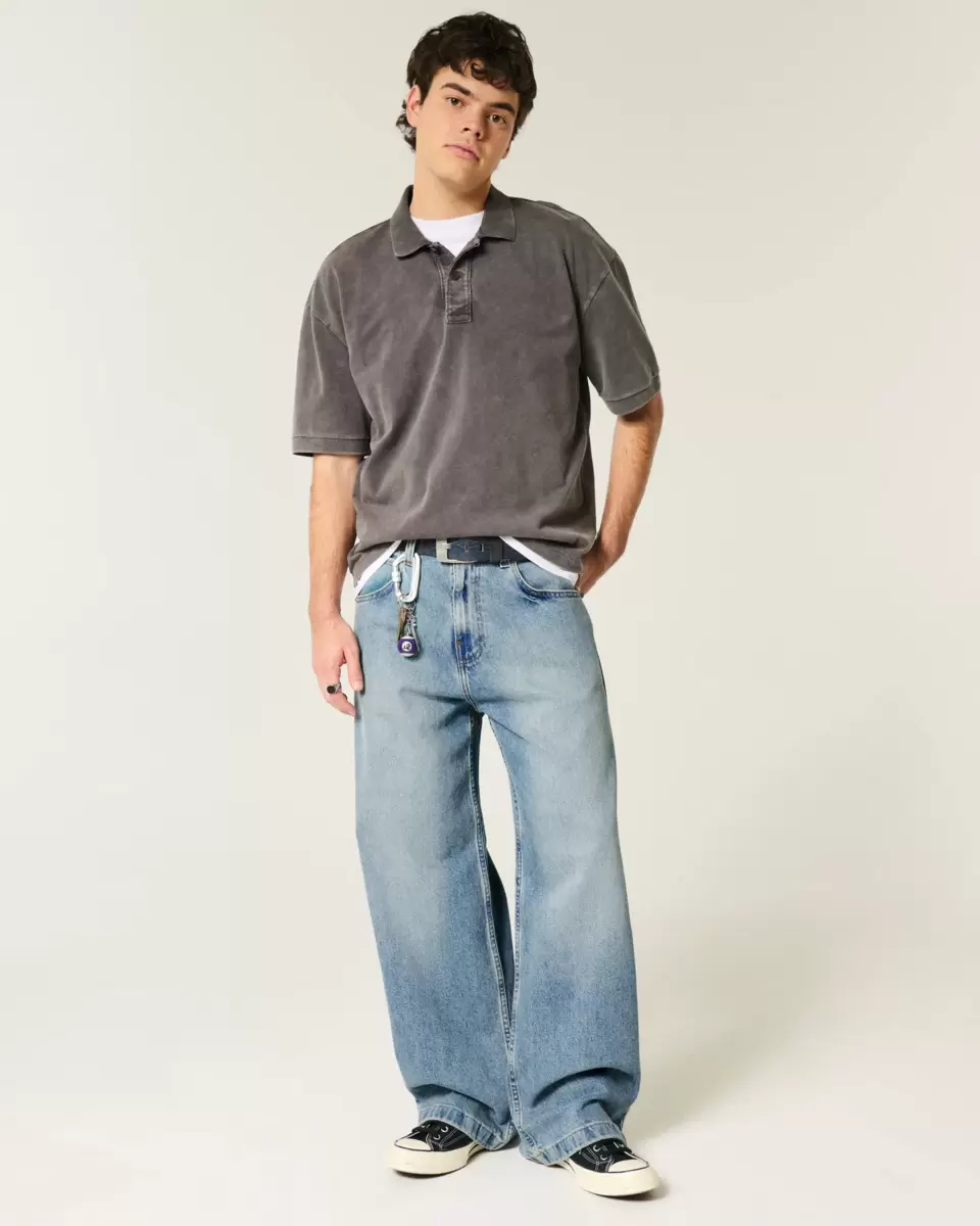 Bekväma jeans i medium tvätt, designade med superbaggy ben och klassisk 5-ficksstyling. Fading. Importerad.