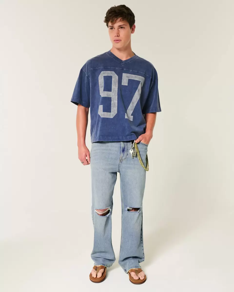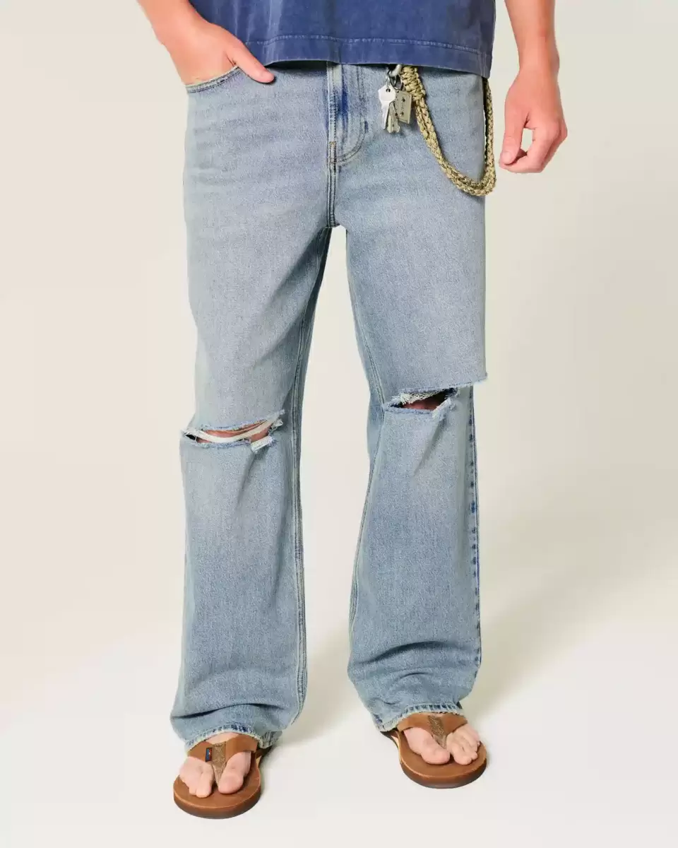 Bekväma jeans i medium tvätt, designade med säckiga ben. Bleknade, morrande, trasiga detaljer. Importerad.