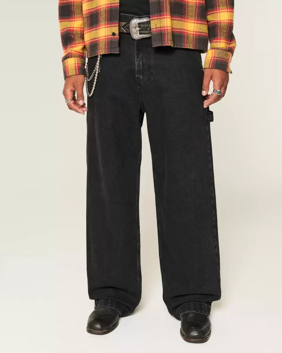 Bekväma jeans i tvättad svart, designade med ett superbaggy ben, vänster målarögla och extra fickor. Importerad.