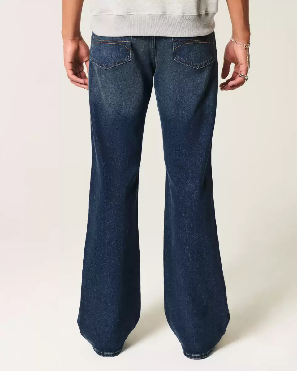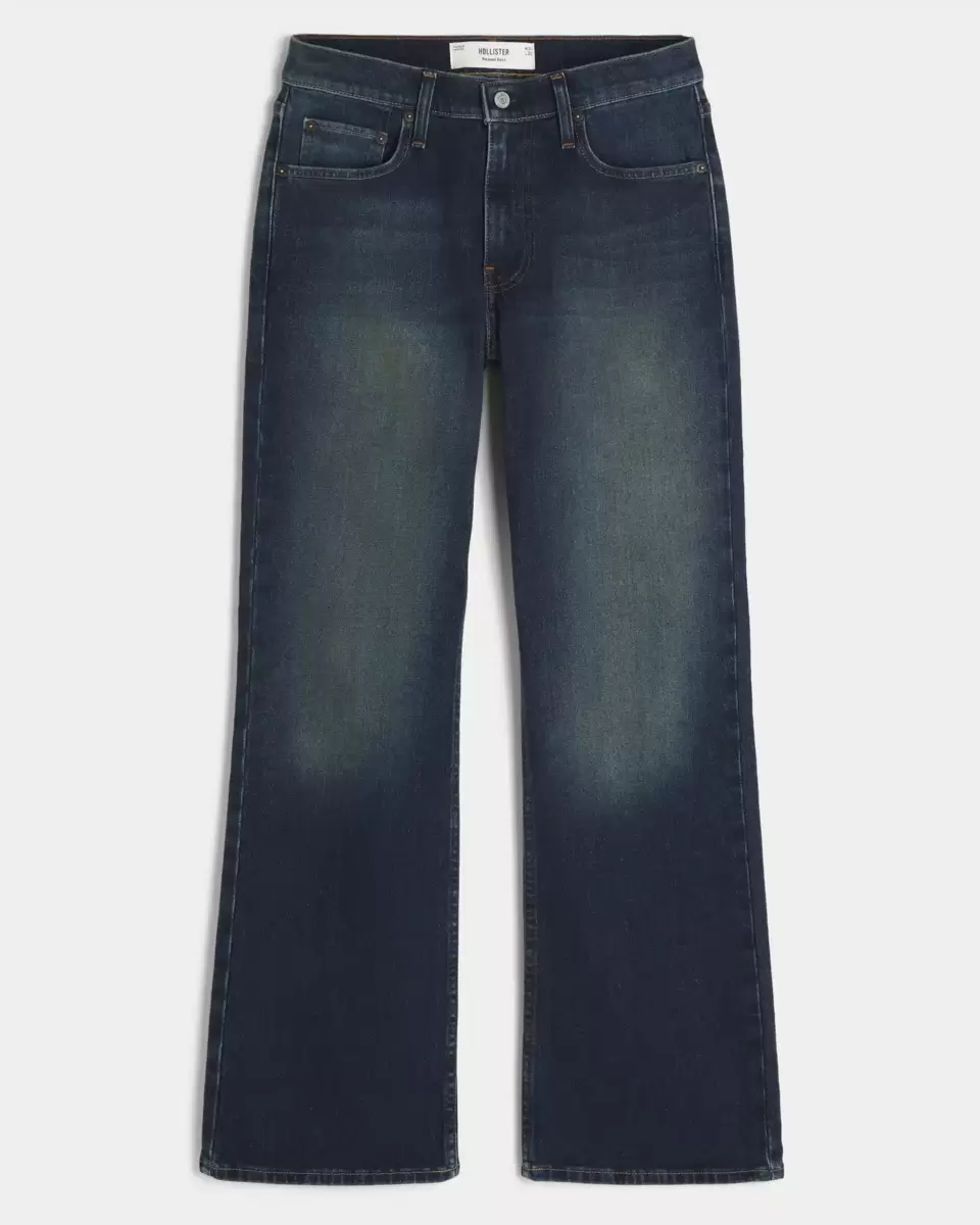 Bekväma jeans i mörk tvätt, designade med avslappnade ben och stövelöppning. Blekning, morrhår. Importerad.